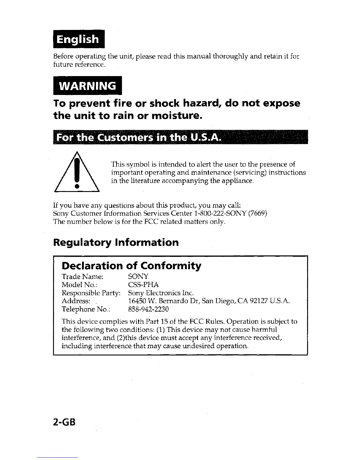 Sony CSS-PHA - Sony Cyber-shot Station Regulatory Information; FCC Declaration of Conformity