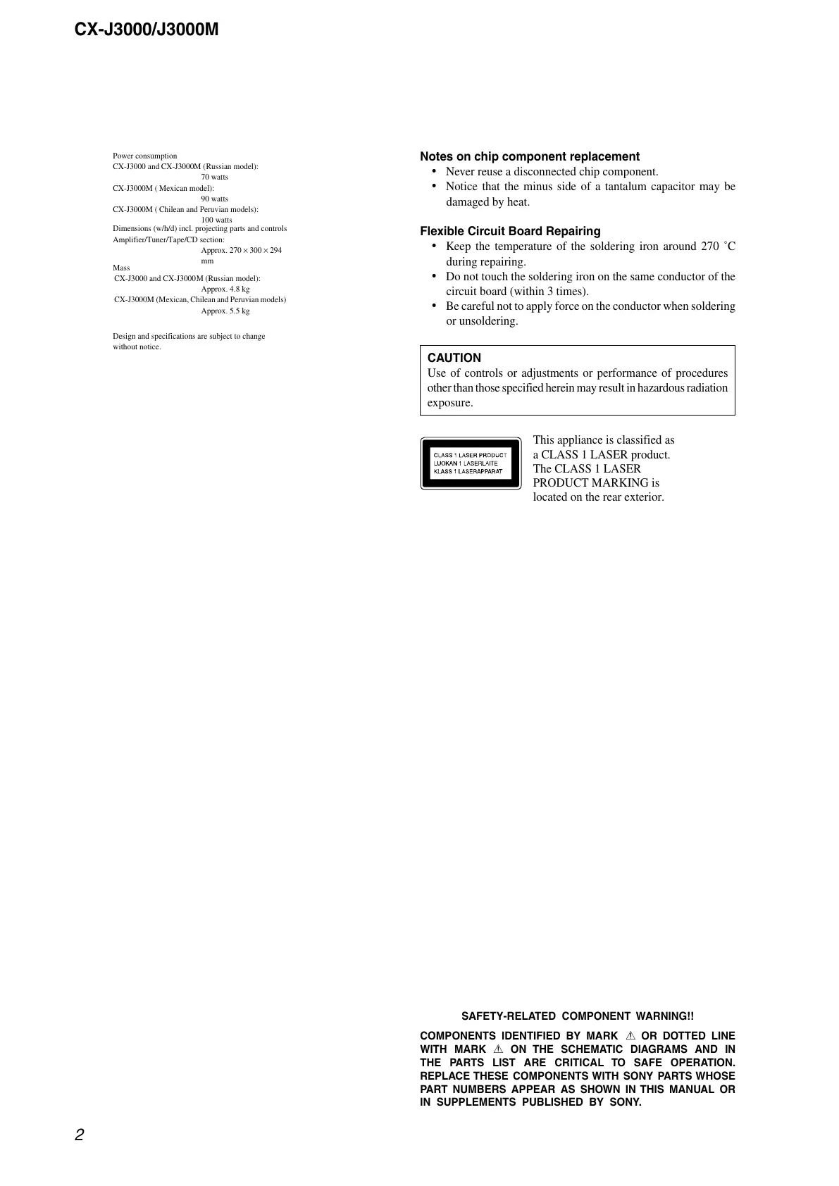 CX-J3000M (Mexican, Chilean and Peruvian models)