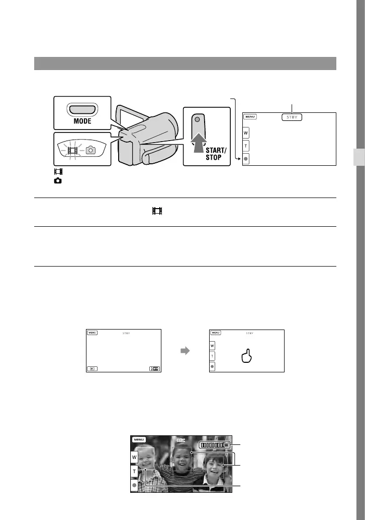 of a person during movie recording (Smile Shutter). When the camcorder detects faces during