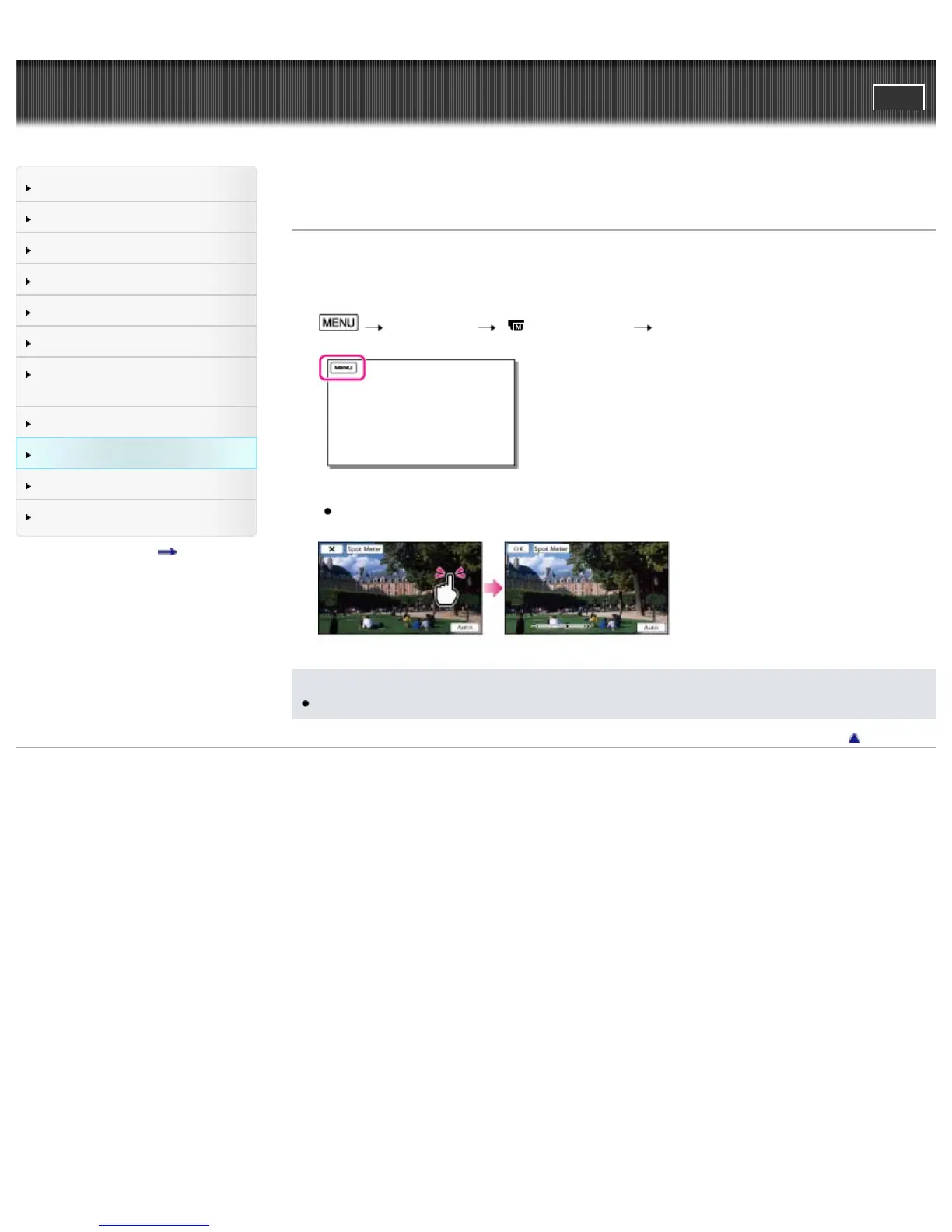Top page > Customizing your camcorder > Camera/Mic > Spot Meter (Flexible spot meter)