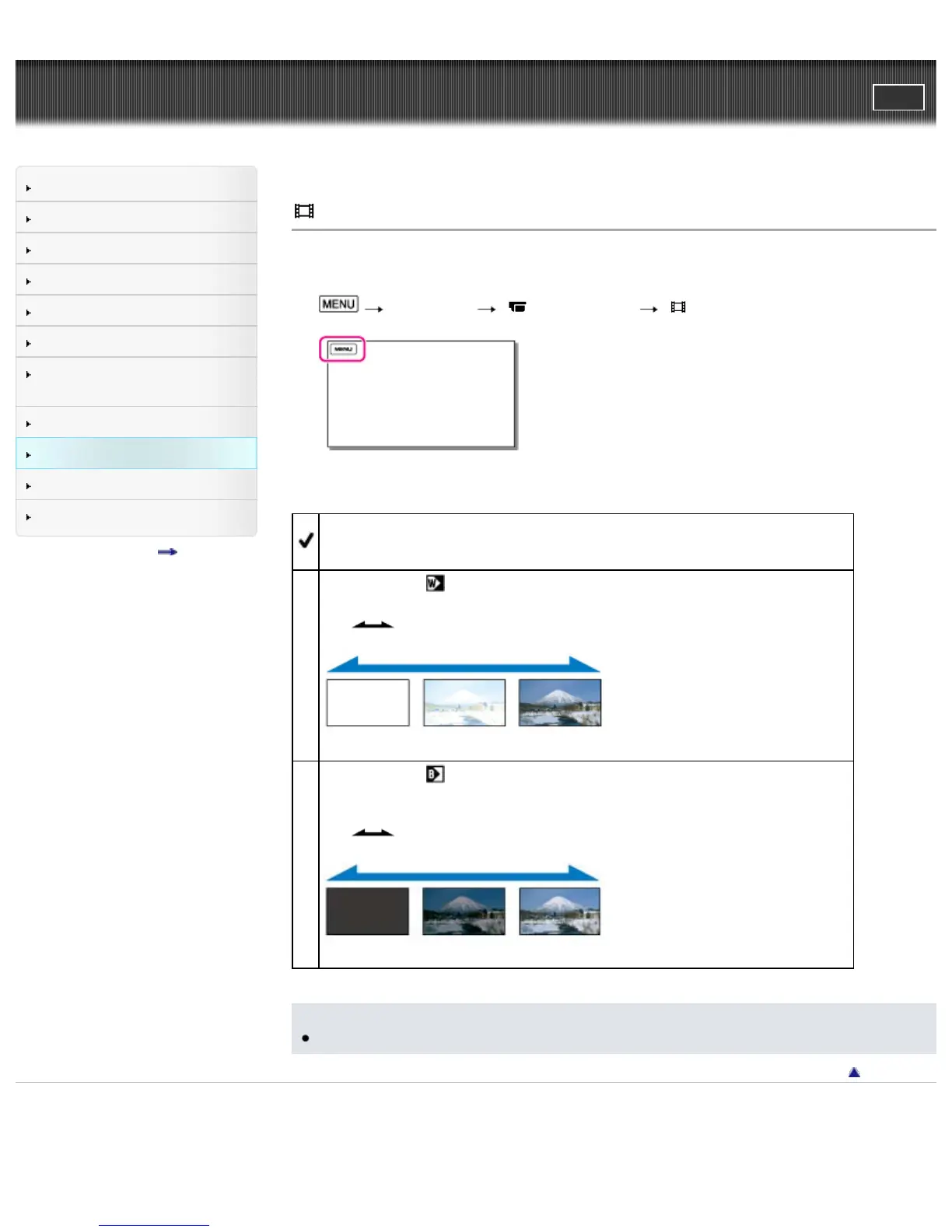 Top page > Customizing your camcorder > Camera/Mic > Fader