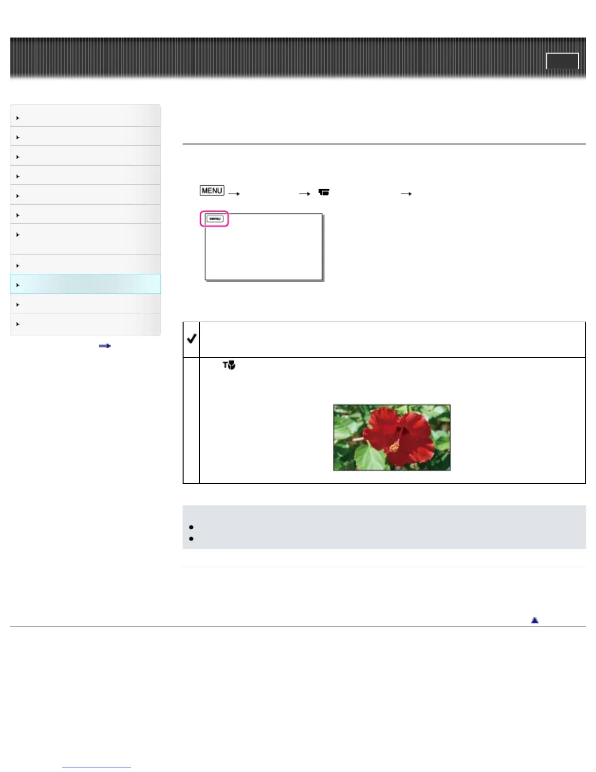 Top page > Customizing your camcorder > Camera/Mic > Tele Macro