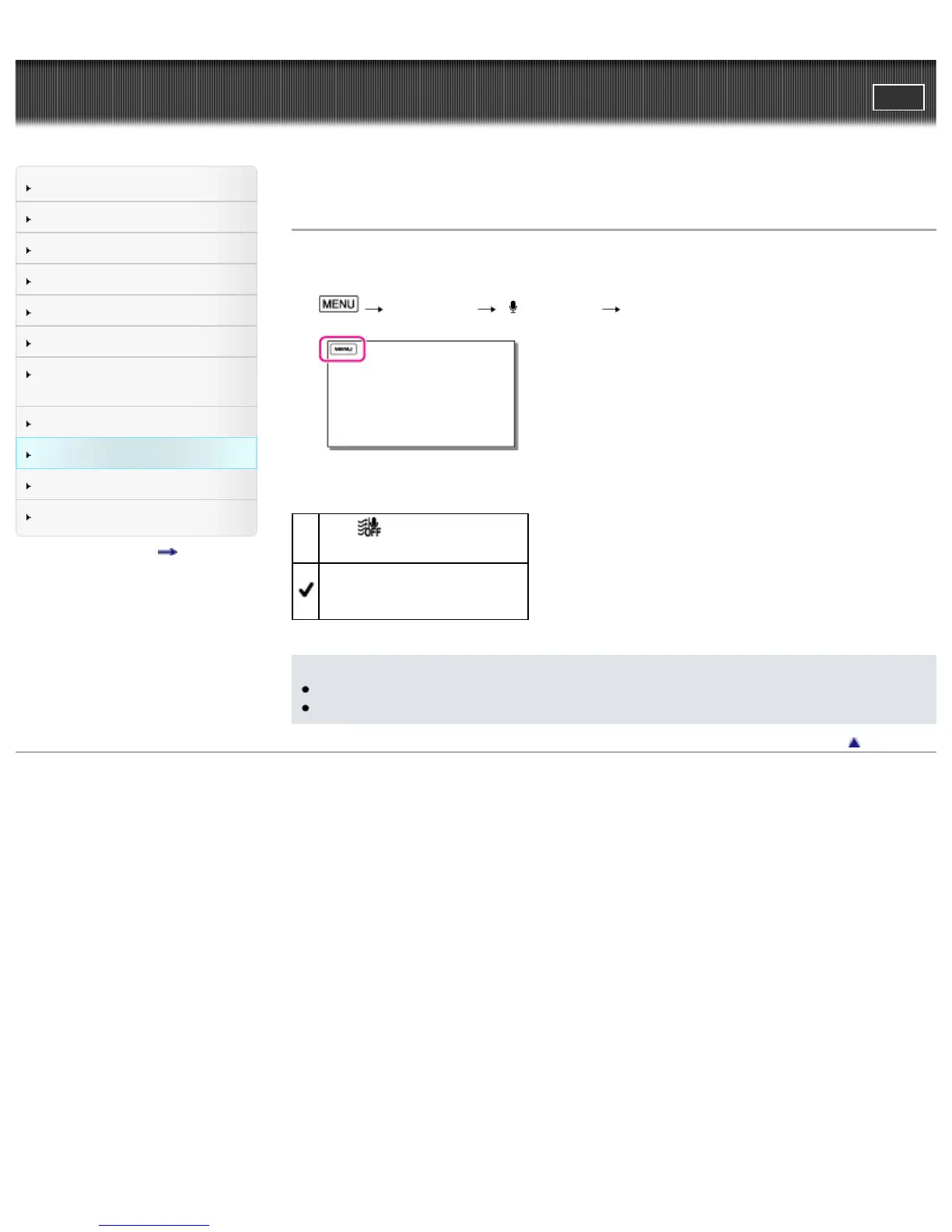 Top page > Customizing your camcorder > Camera/Mic > Auto Wind NR