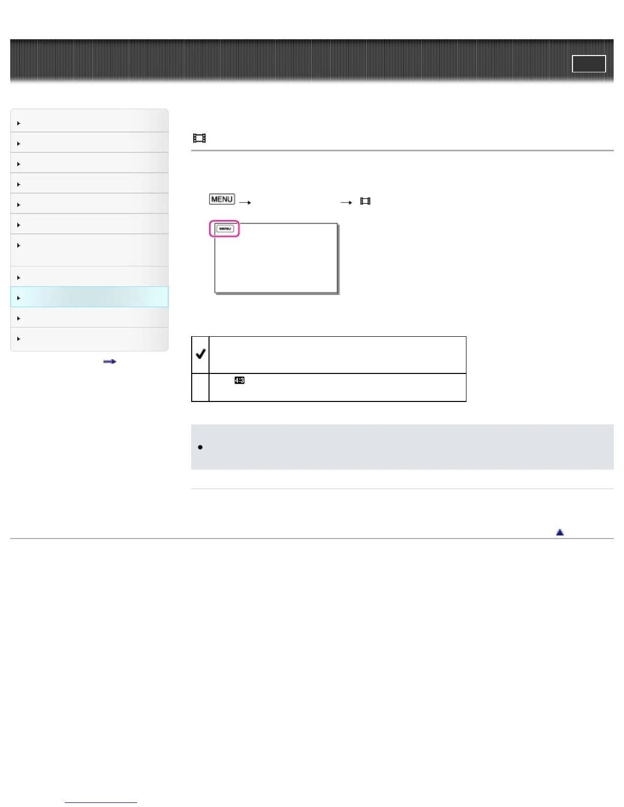 Top page > Customizing your camcorder > Image Quality/Size > Wide Mode