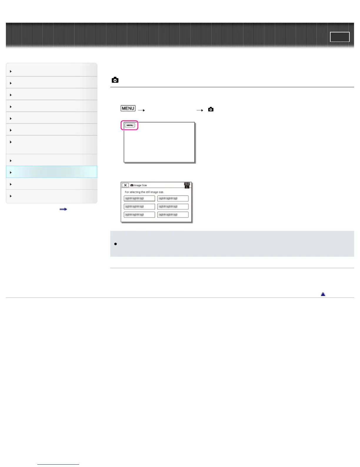 Top page > Customizing your camcorder > Image Quality/Size > Image Size