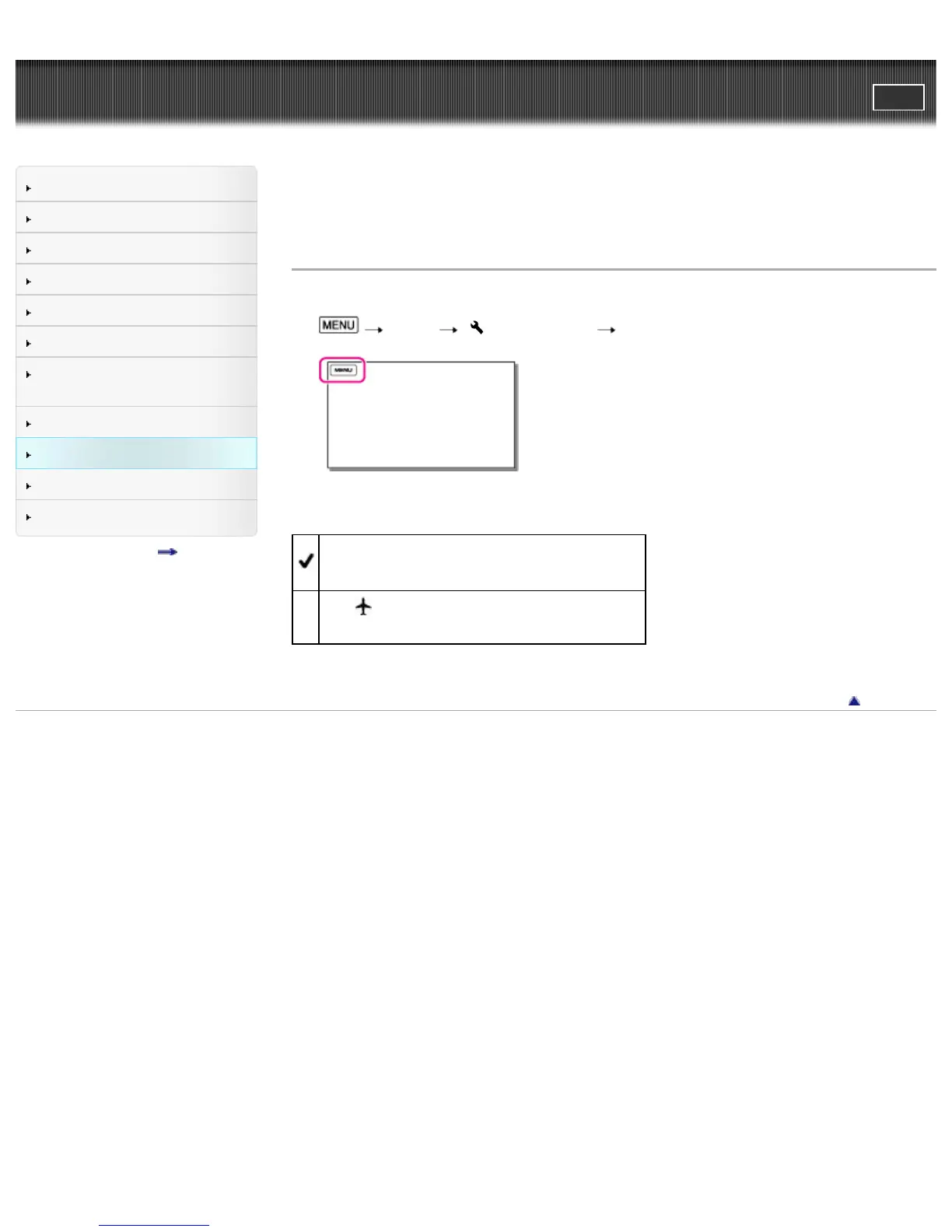 Airplane Mode (HDR-CX410VE/ CX430V/ CX430VE/ PJ420VE/