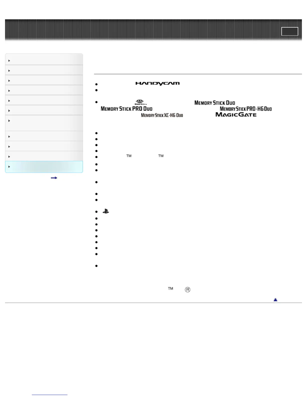 ,” “Memory Stick PRO-HG Duo,” “ ,” “Memory