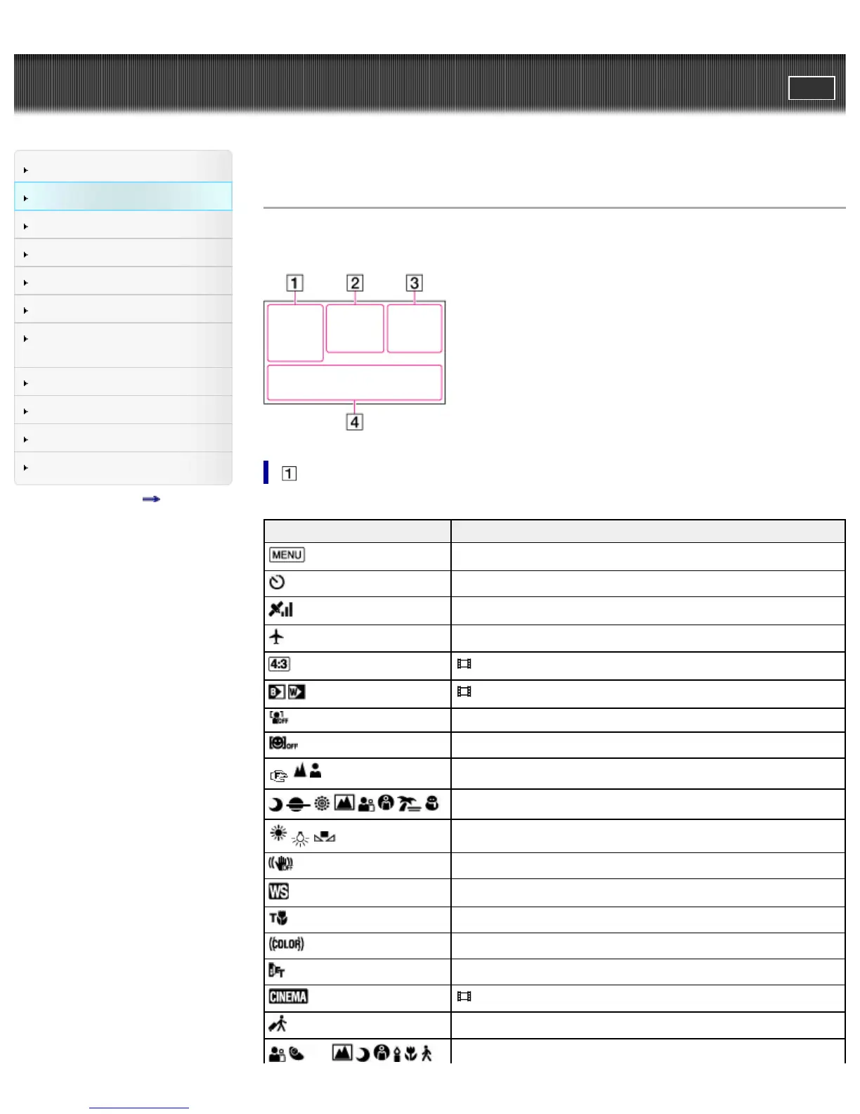 Top page > Before use > Parts and controls/Screen indicators > Screen indicators