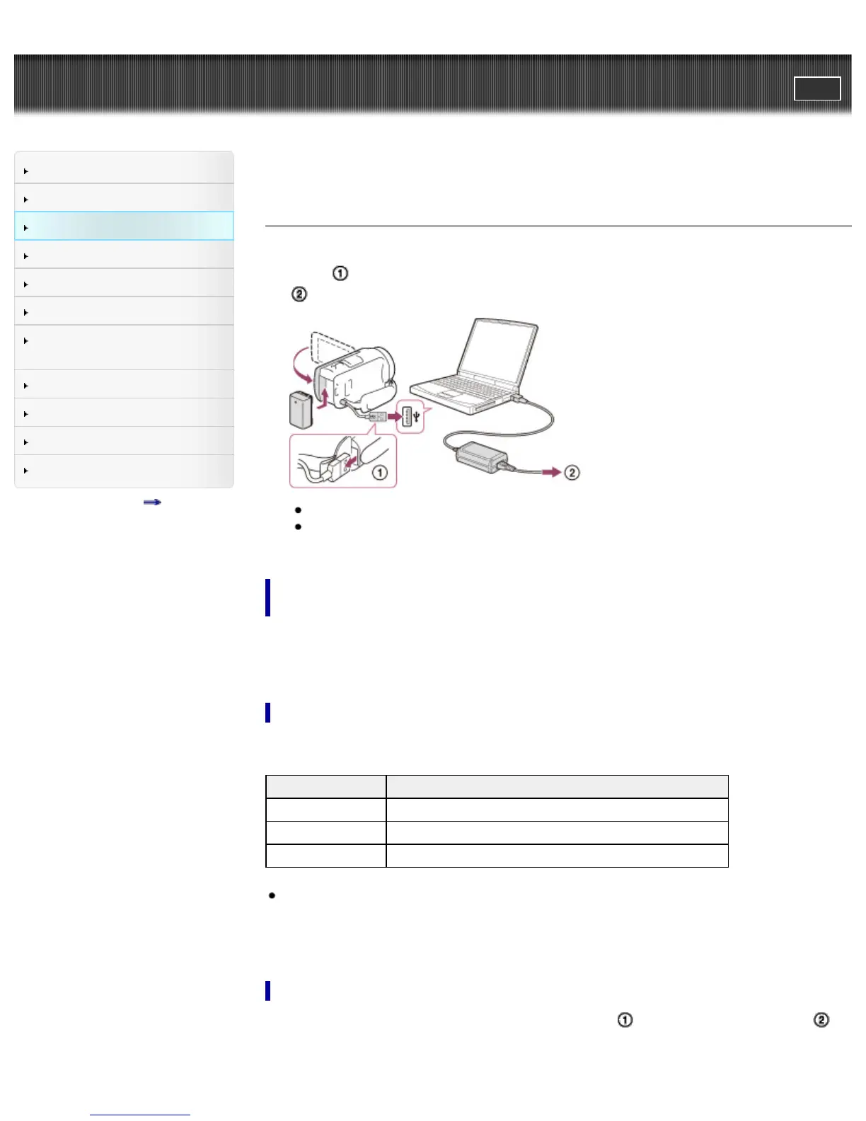 The charging times shown in the table above are measured when charging the camcorder at a room