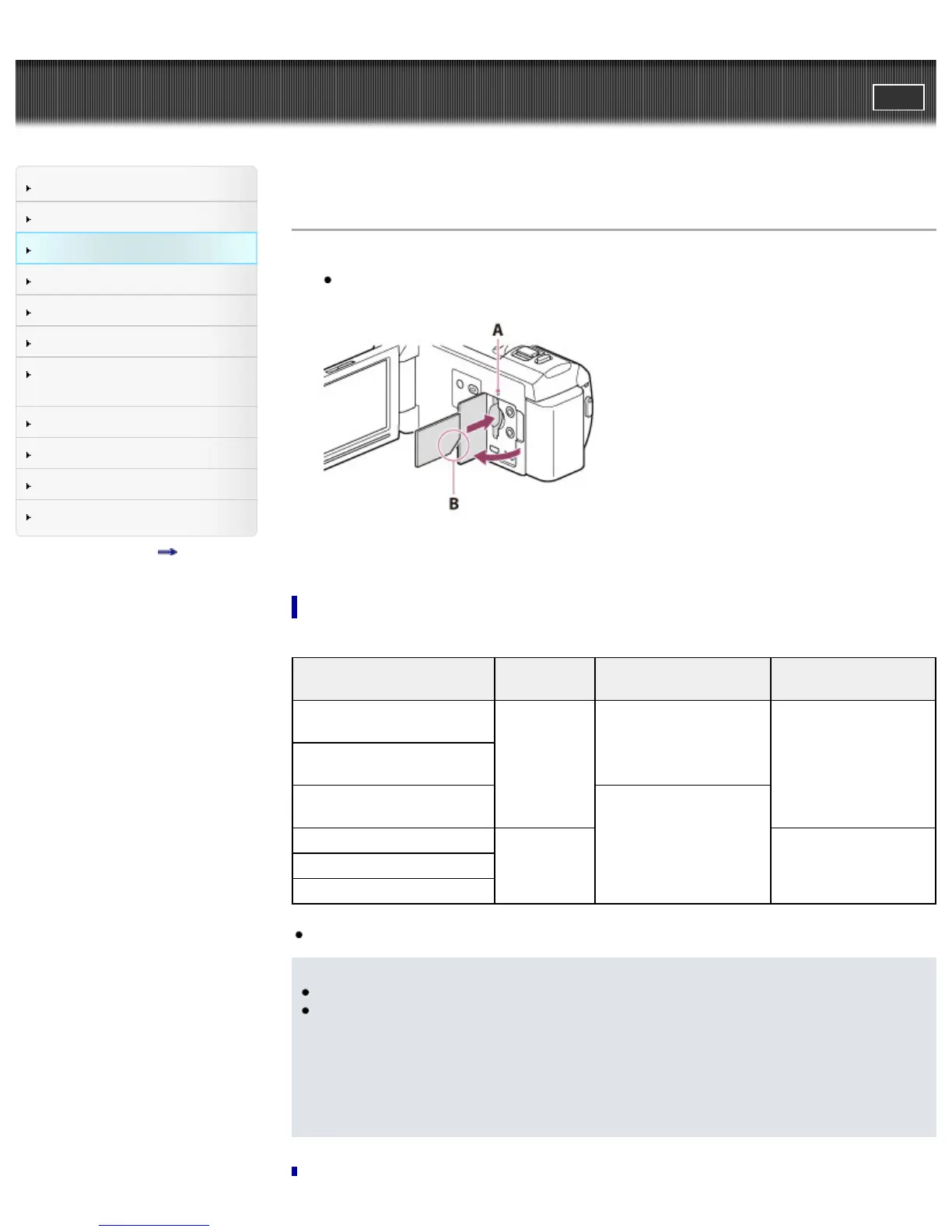 Top page > Getting started > Preparing the recording media > Inserting a memory card