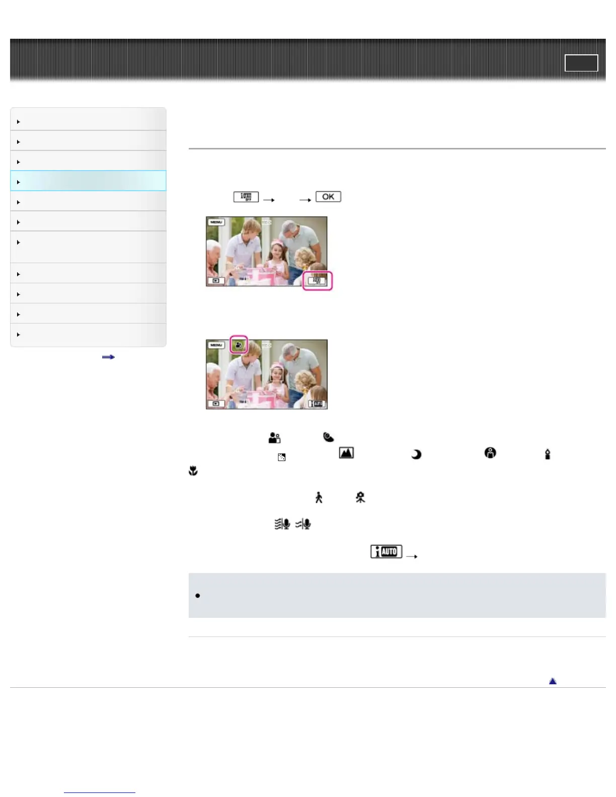 Top page > Recording > Useful functions for recording images > Intelligent Auto
