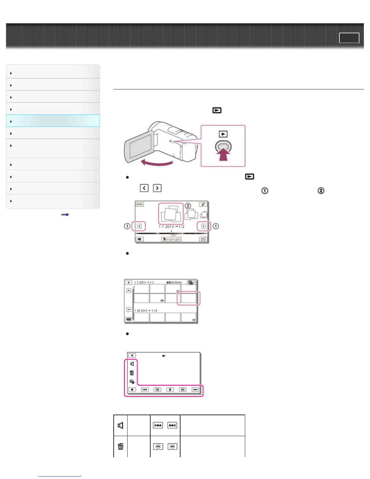 Top page > Playback > Playback > Playing movies and photos from the Event View screen