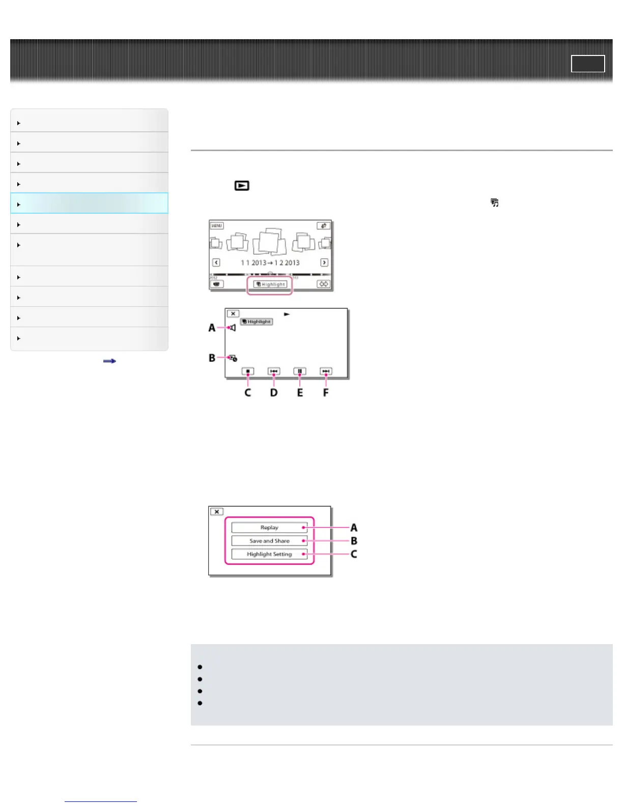 Top page > Playback > Highlight playback > Enjoying a digest of your movies (Highlight Playback)