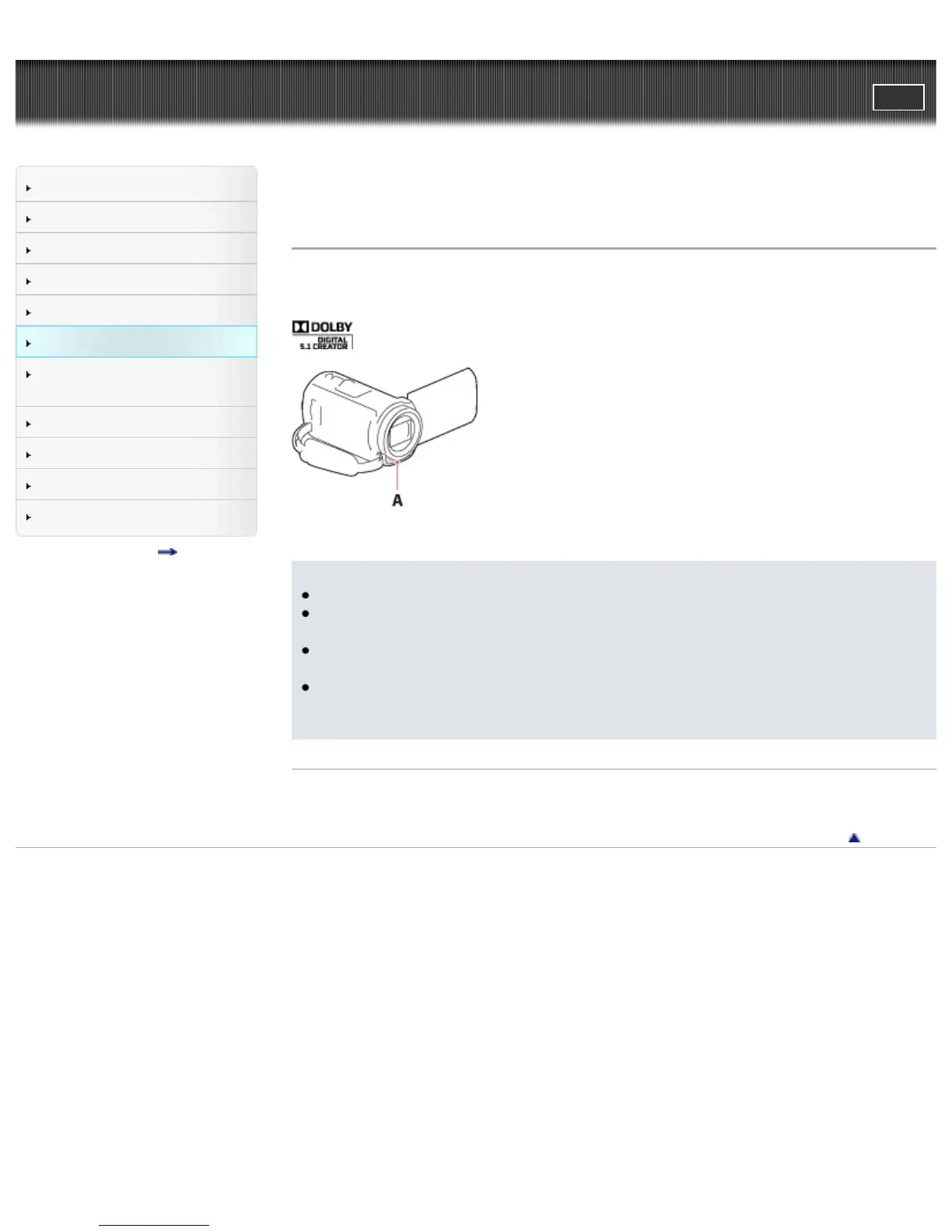 You can record Dolby Digital 5.1ch surround sound with the built-in microphone. Realistic sound can be