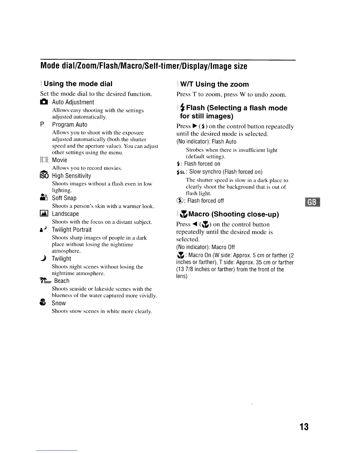 dial/Zoom/Flash/Macro/Self-limer/Display/lmage