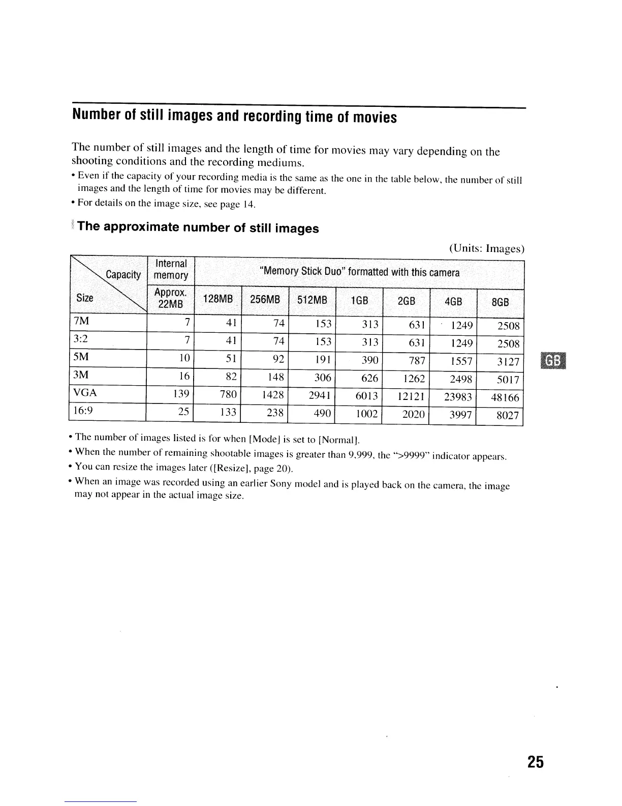 remaining shootable images is greater than 9,999, the ">9999" indicator appears.