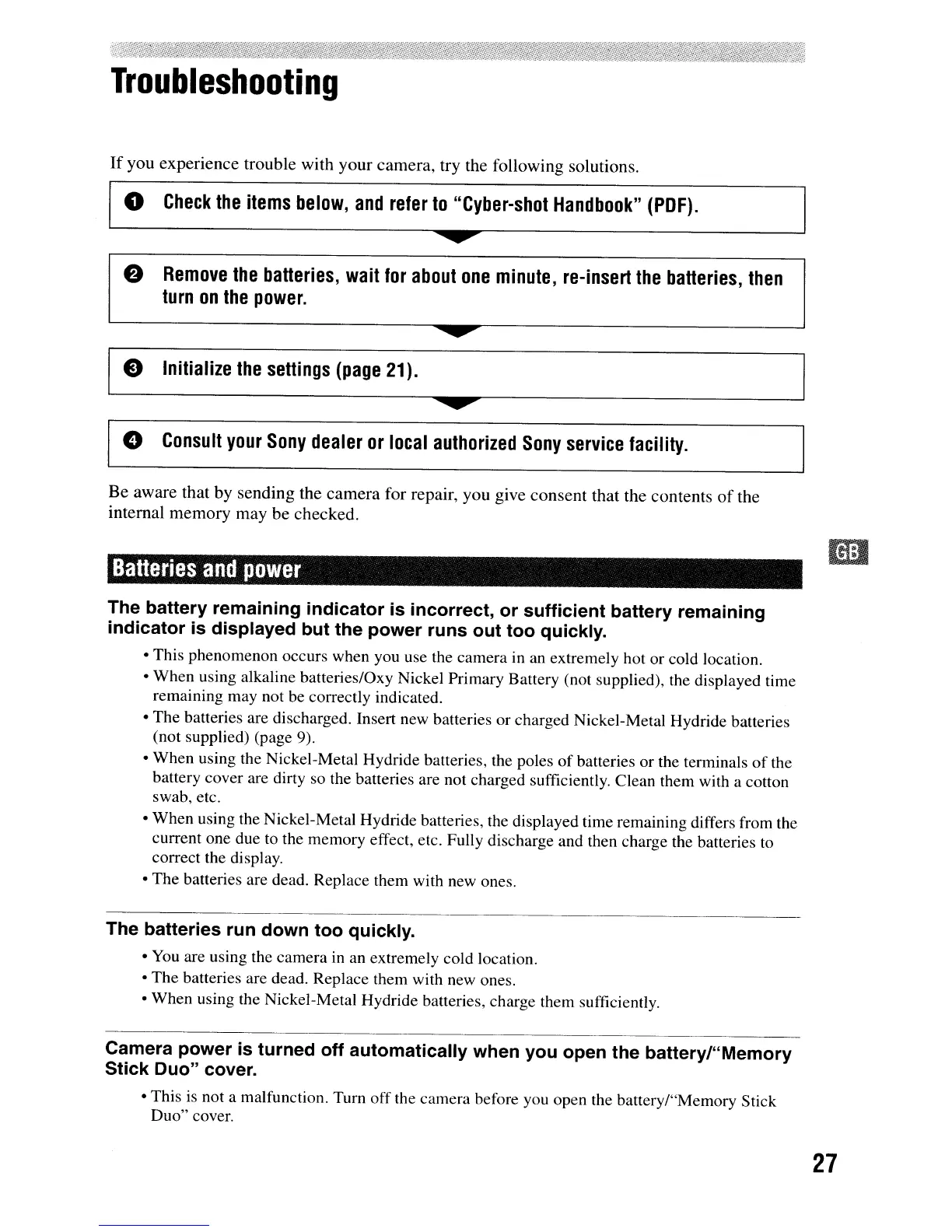 • The batteries are discharged. Insert new batteries or charged Nickel-Metal Hydride batteries
