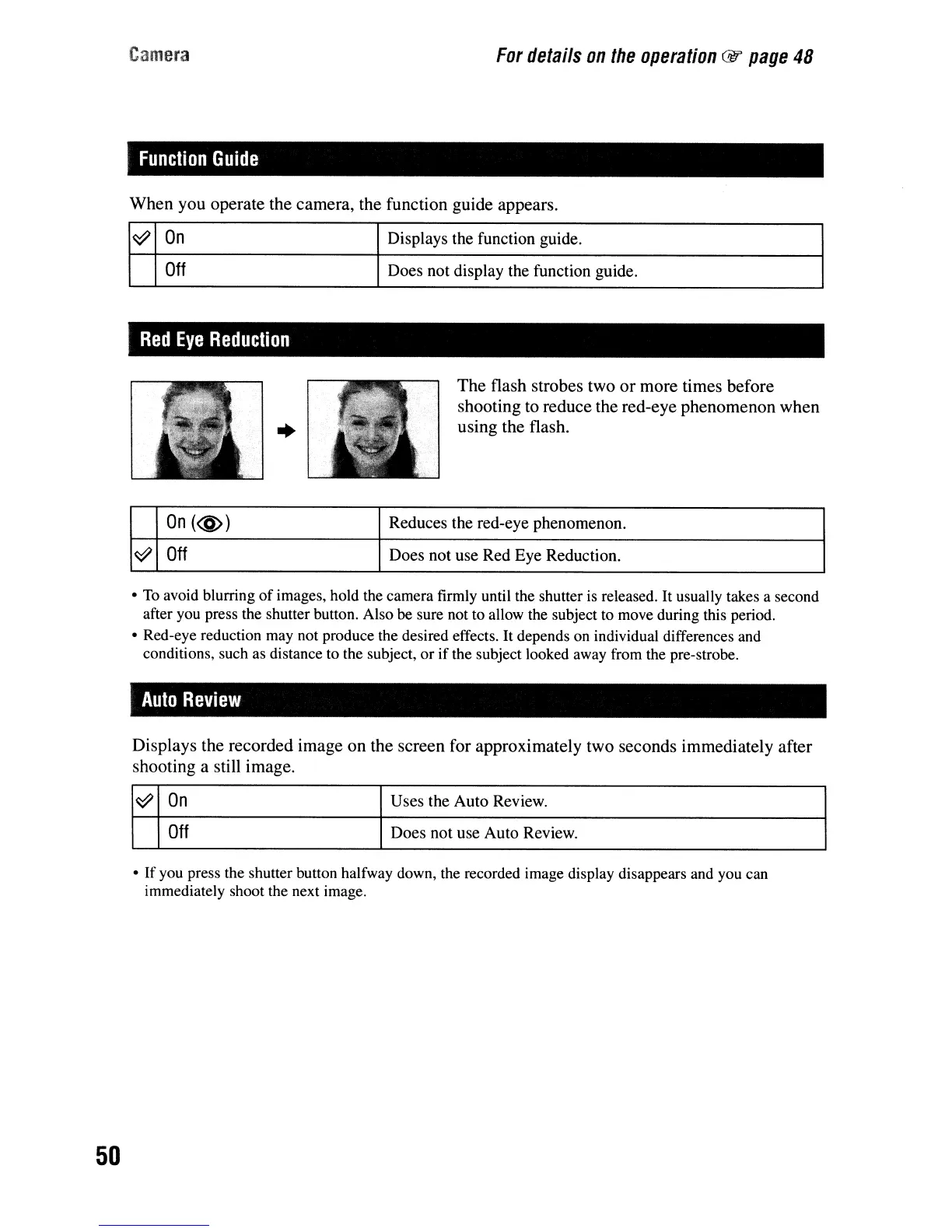 • Red-eye reduction may not produce the desired effects. It depends on individual differences and