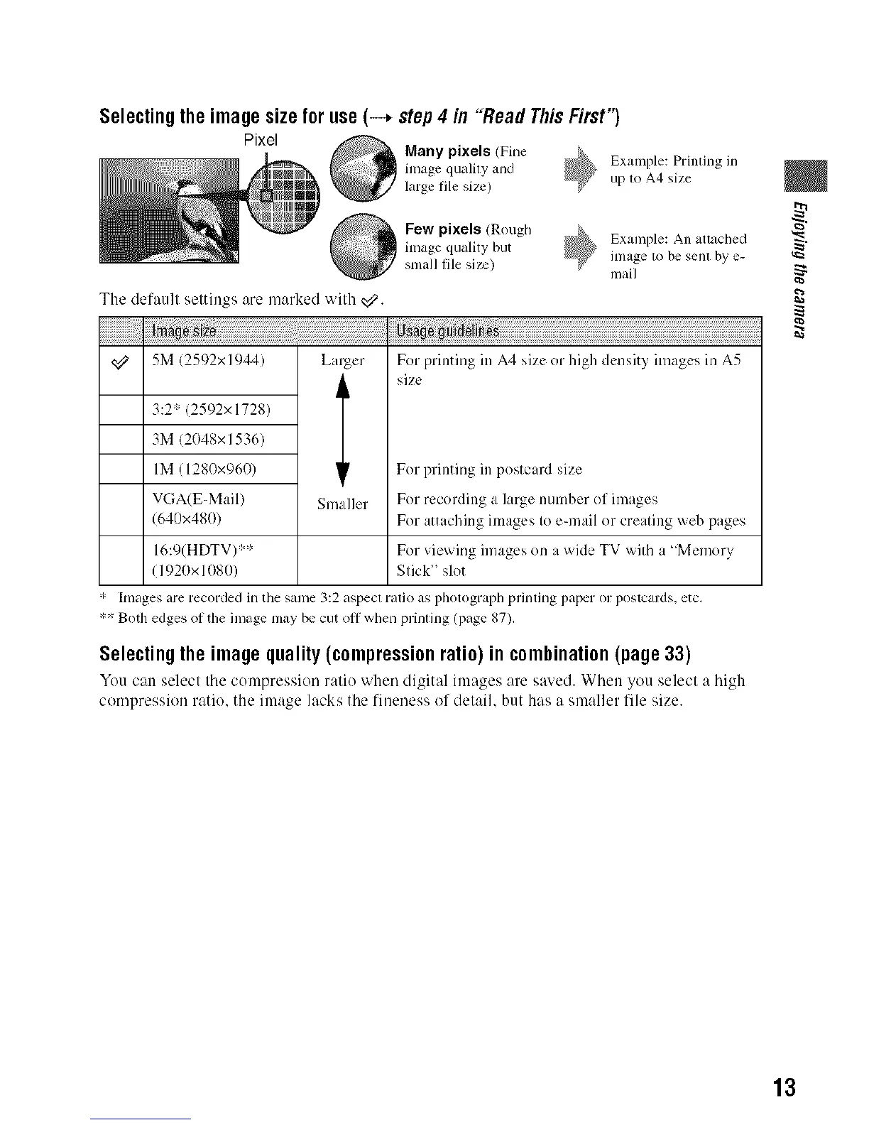 Selectingtheimagequality(compressionratio)incombination(page33)