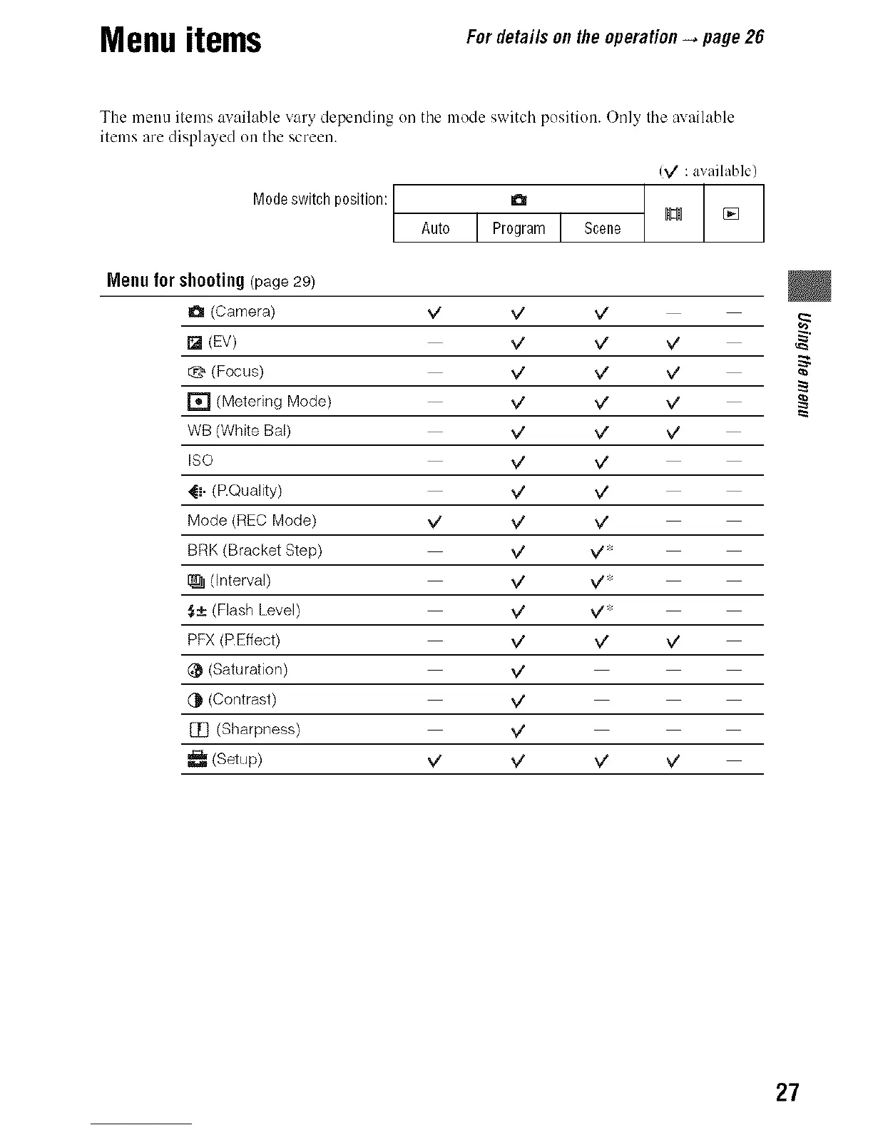 The menu items available vary depending en tile mede switch pesitien. Only tile available