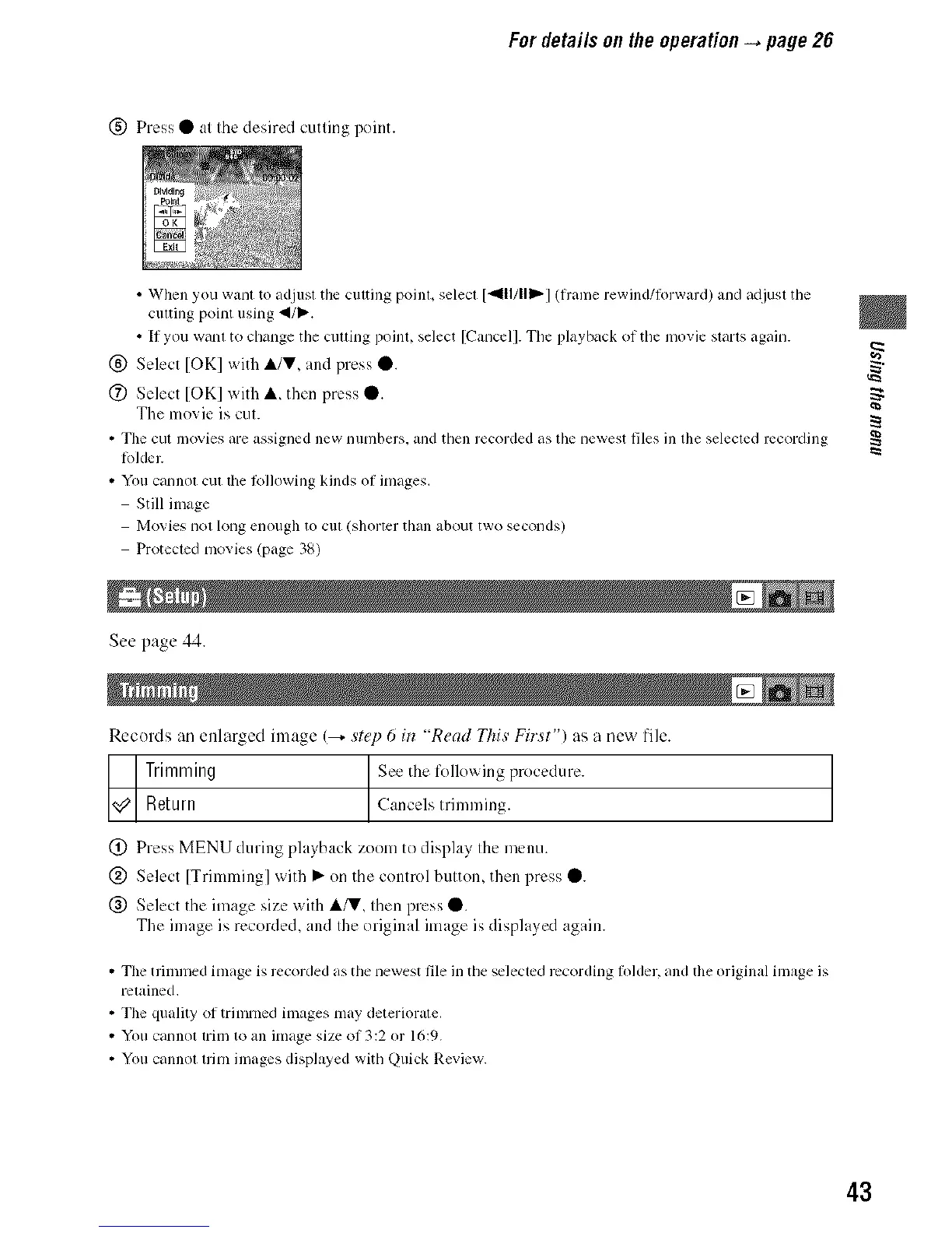 (_ Select [Trimming] with _- on the control button, then press Q.
