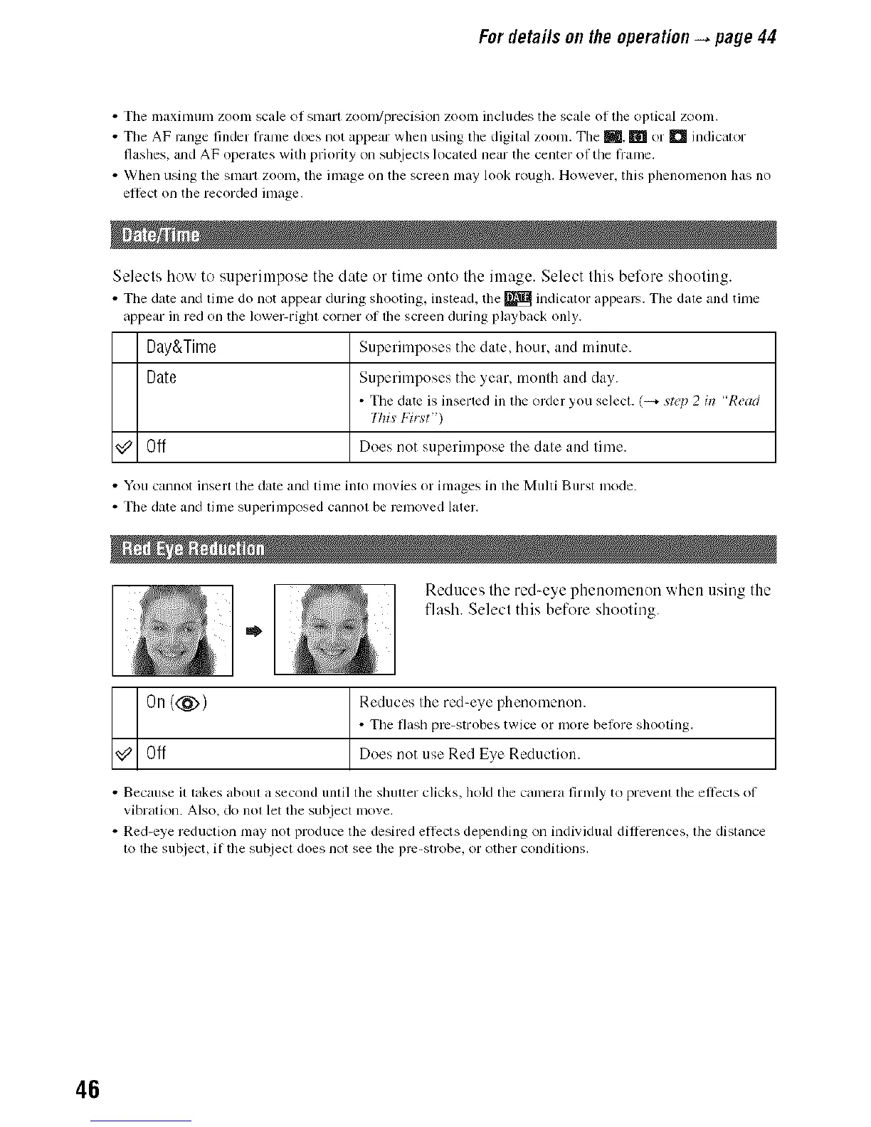 • Red-eye reduction may not produce the desired ellccts depending on individual dil]erences, the distance