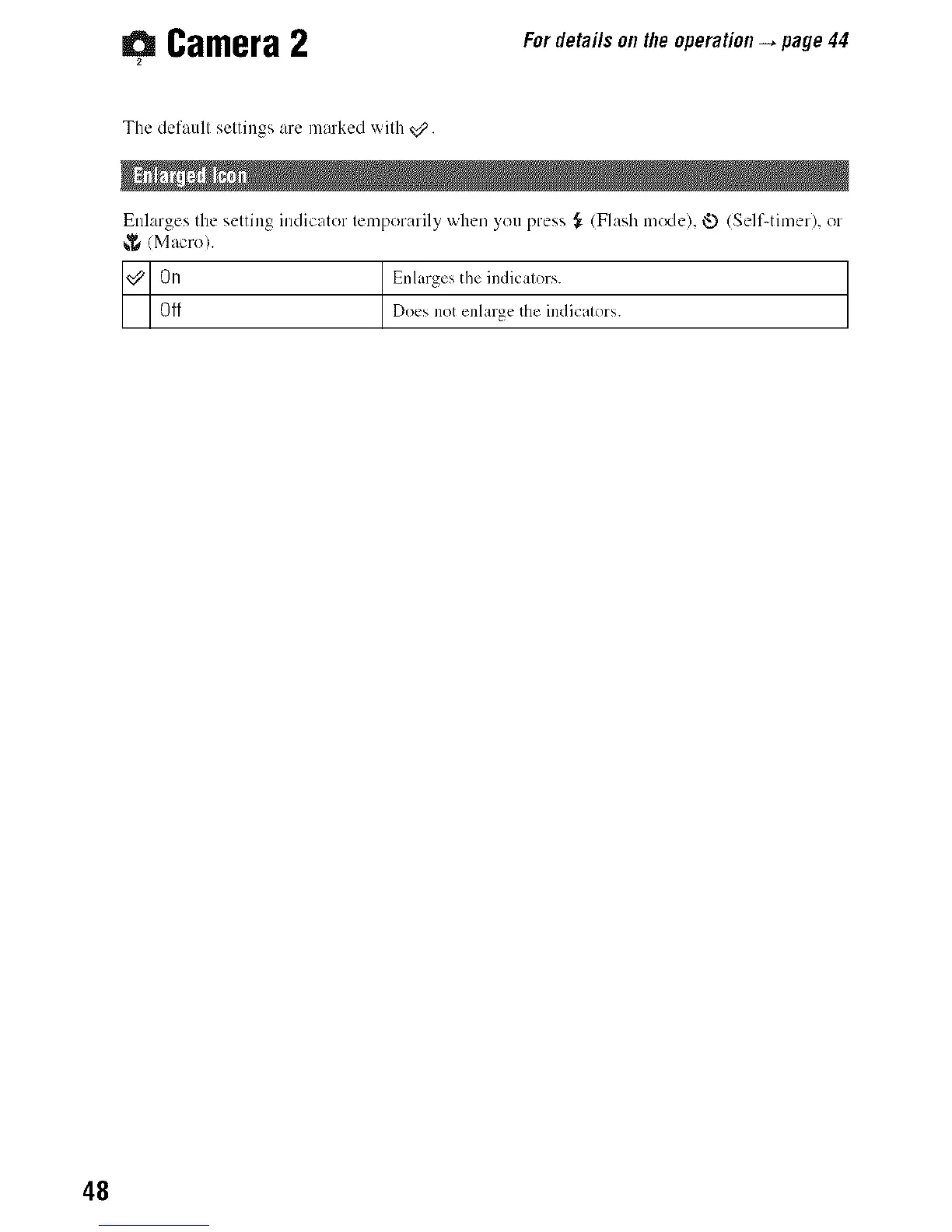 Enlarges the setting indicator temporarily v,'hen you press _ (Flash mode). 0 (Selfqimer), or
