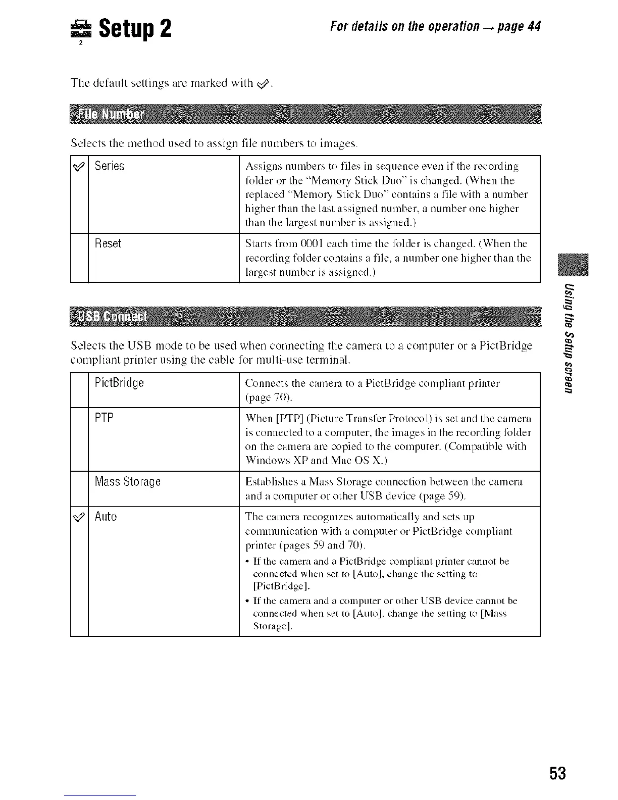 Selects the USB mode to be used when connecting the camera to a computer or a PictBridge