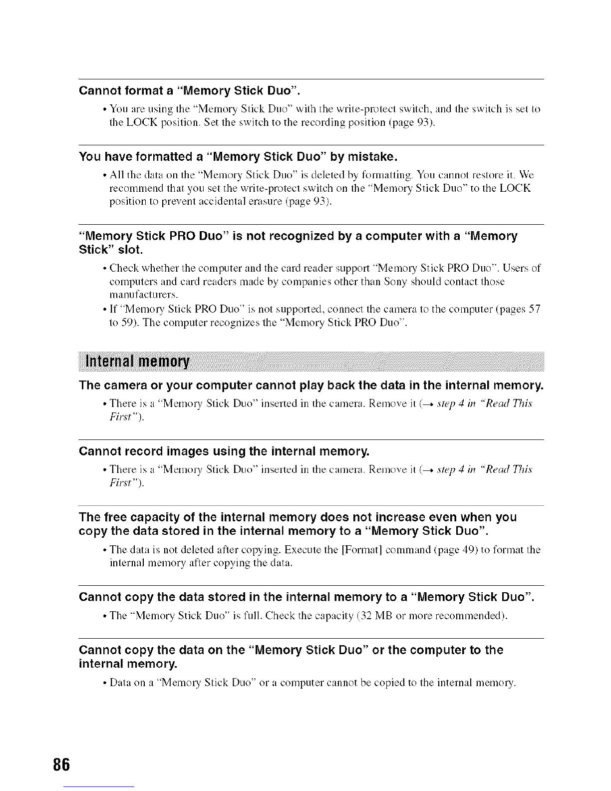• There is a MemolT Stick Duo" insertedin the camera. Remove it (_ awp 4 in "Rt.ad Thia