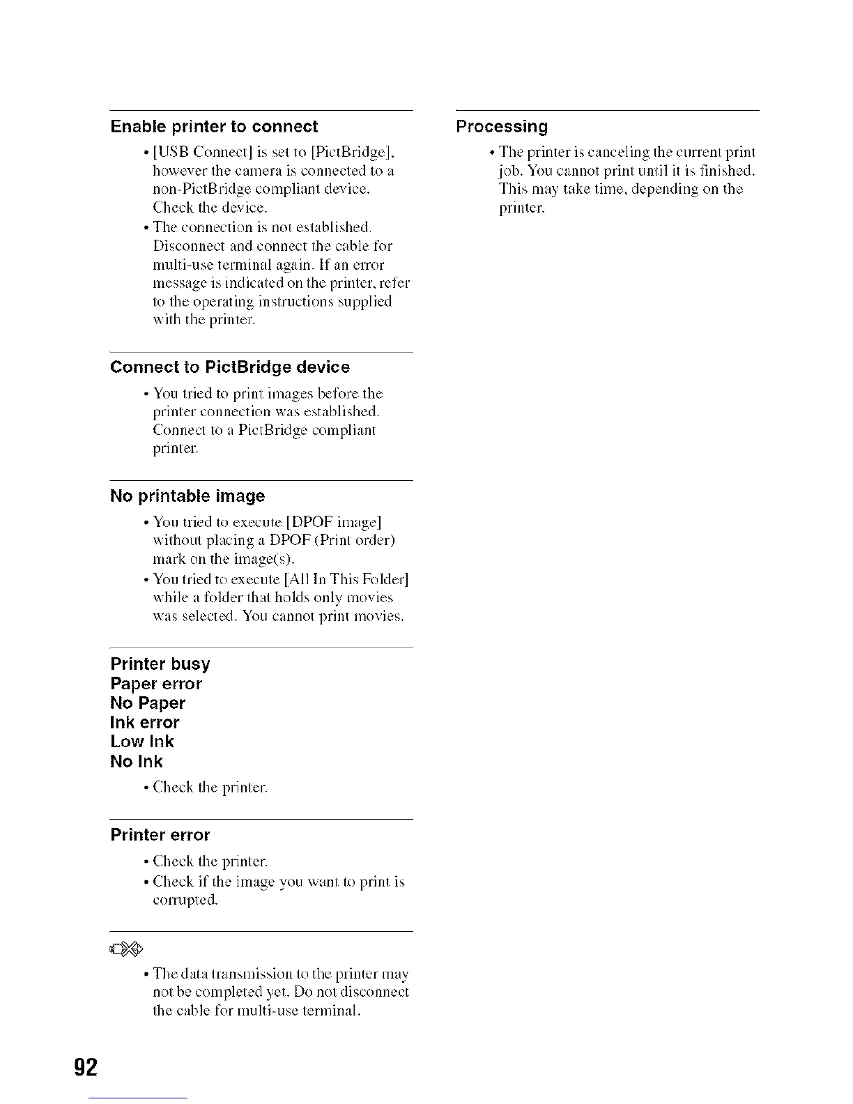 • The data transmission to the printer may
