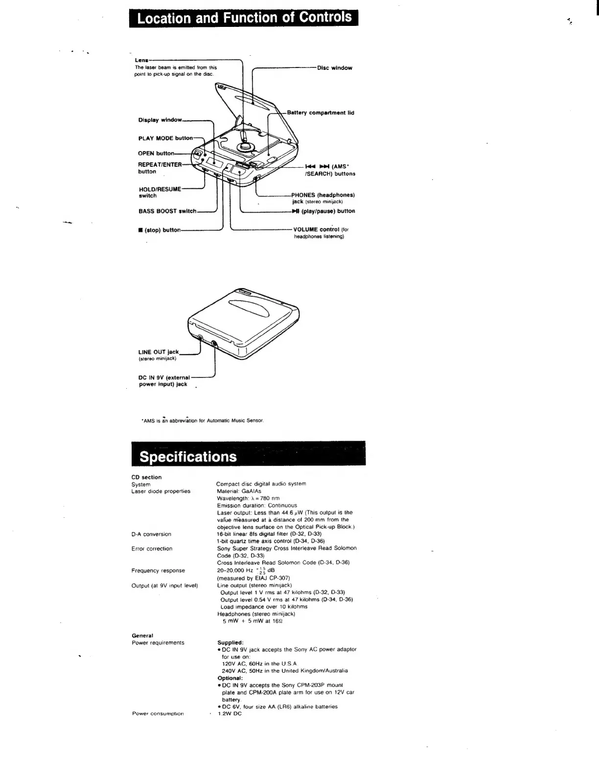 Sony D-32 - Specifications