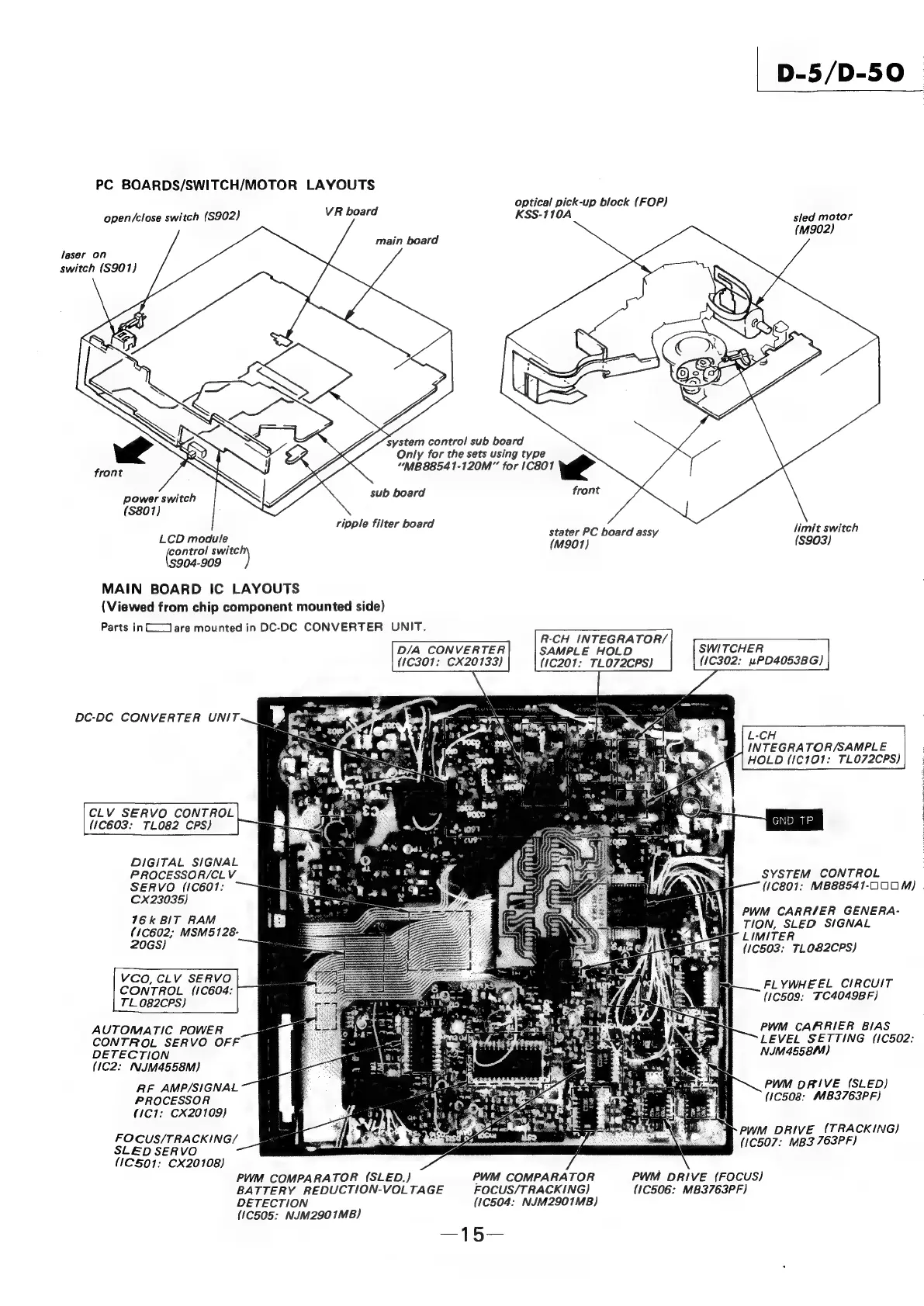 Sony D-5 - PC Boards;Switch;Motor Layouts; Main Board IC Layouts