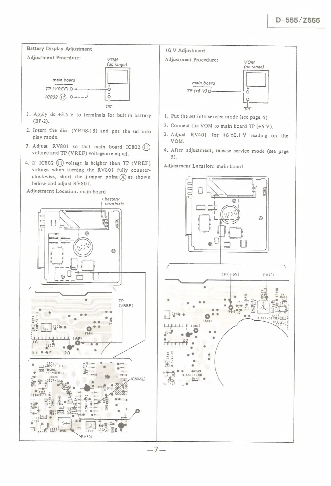 Sony D-555 - Battery Display Adjustment; +6 V Adjustment