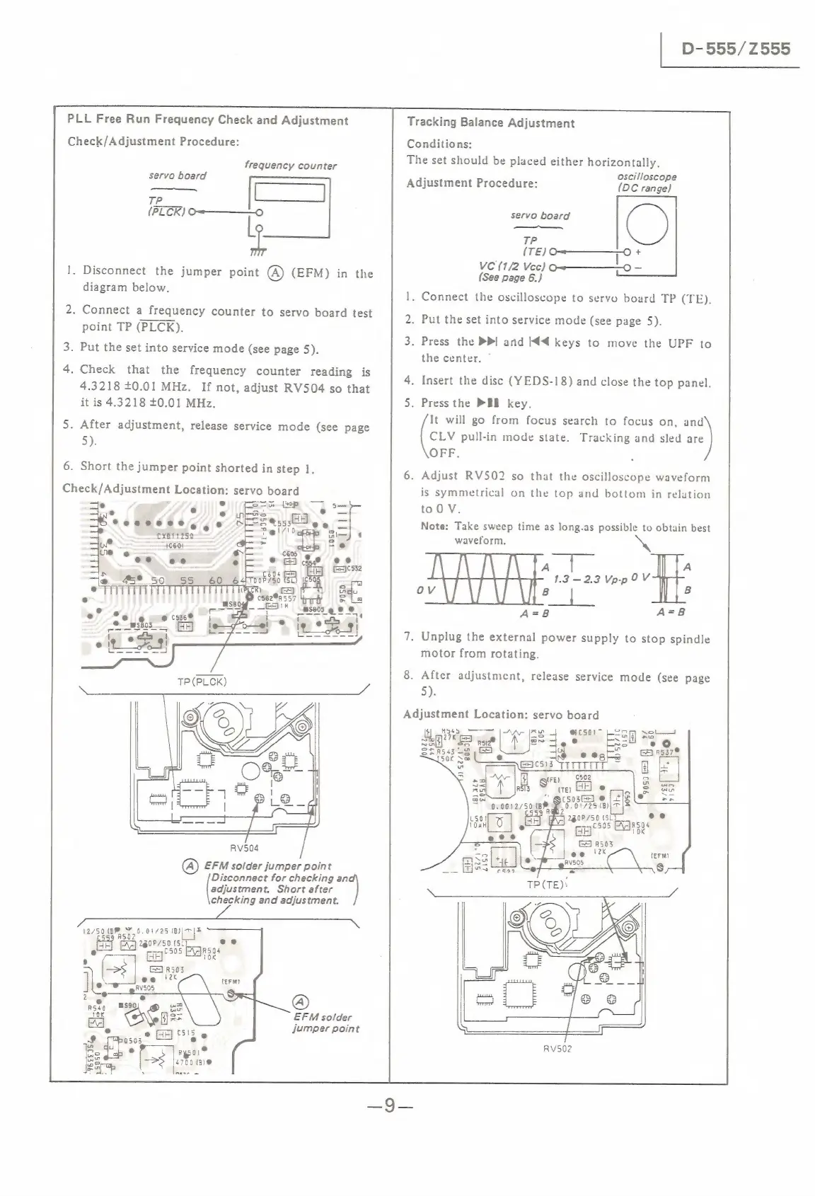 Sony D-555 - PLL Free Run Frequency Check;Adjustment