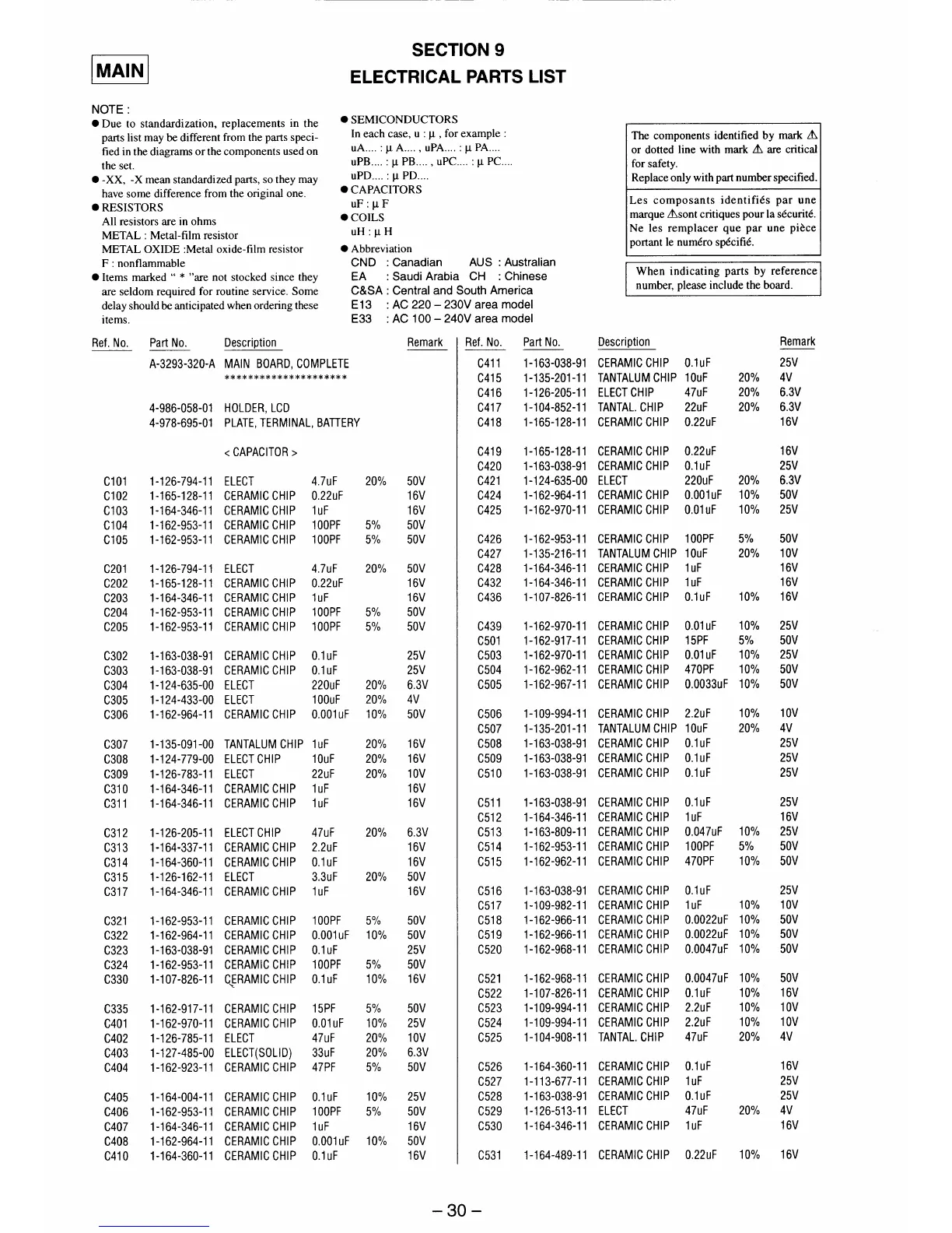 Sony D-E300AN - Electrical Parts List - Capacitors; Capacitor Listings
