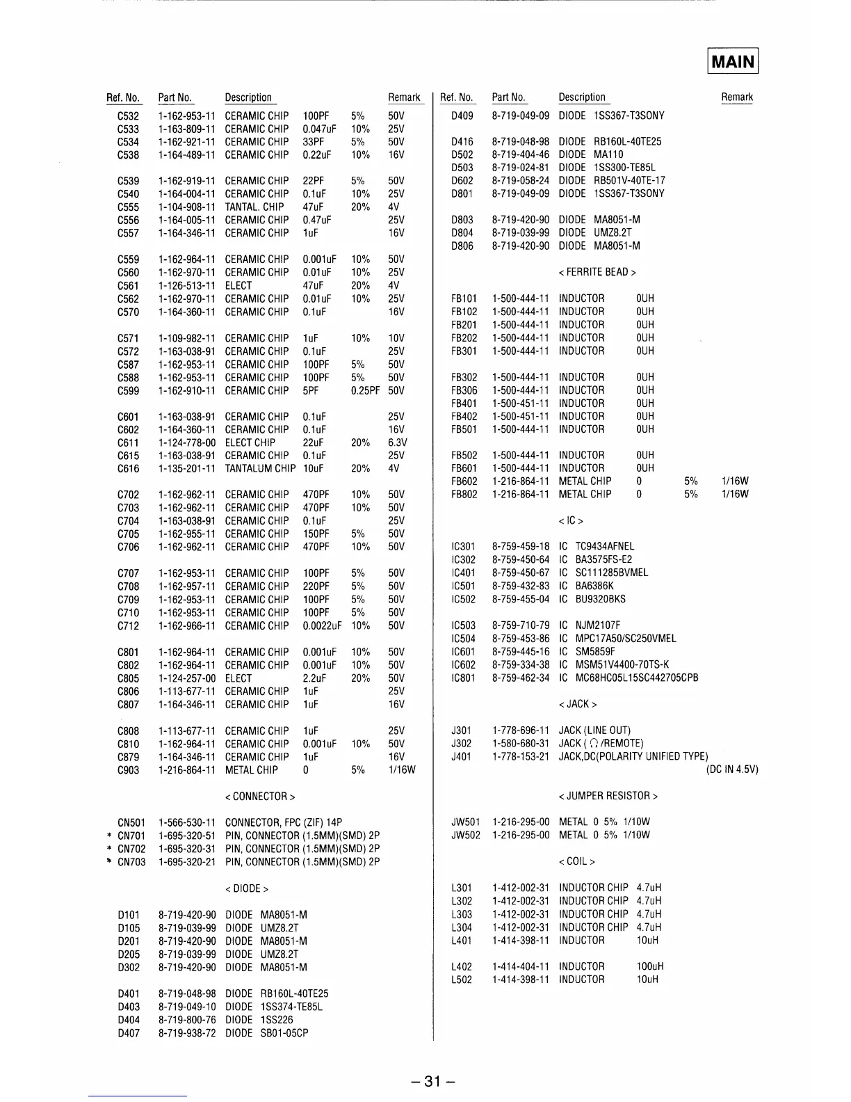 Sony D-E300AN - Electrical Parts List - Resistors and Diodes; Resistor and Diode Listings