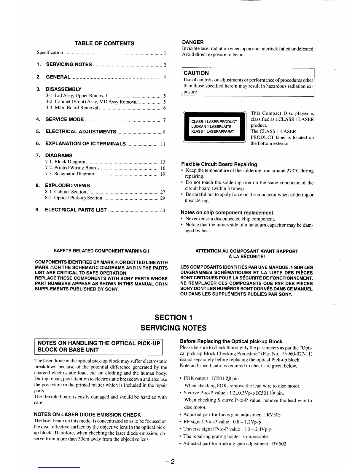 Sony D-E300AN - Servicing Notes; Optical Pick-up and Laser Diode Handling