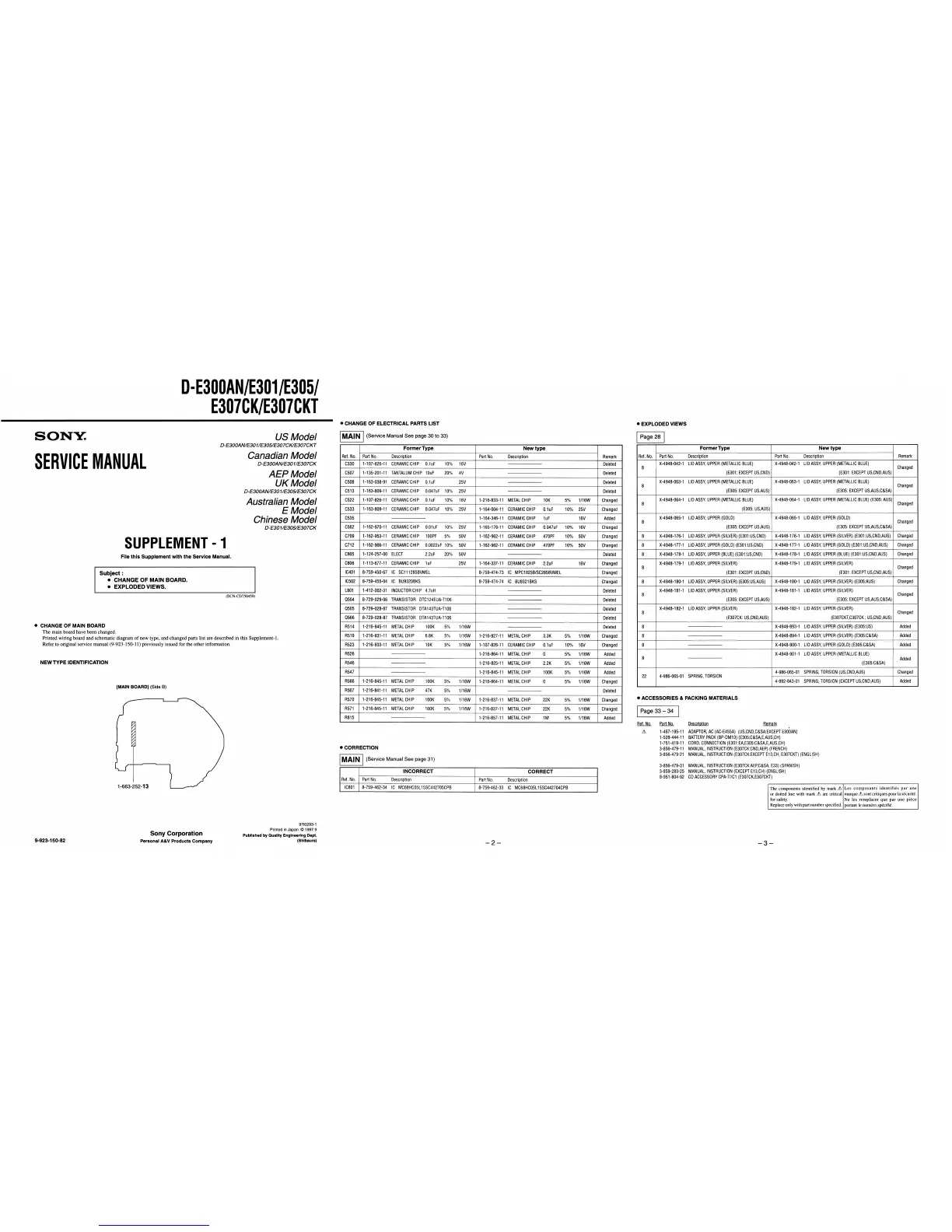 Sony D-E300AN - Service Manual Supplement 1: Main Board Changes; Electrical Parts List Updates; Exploded View Updates