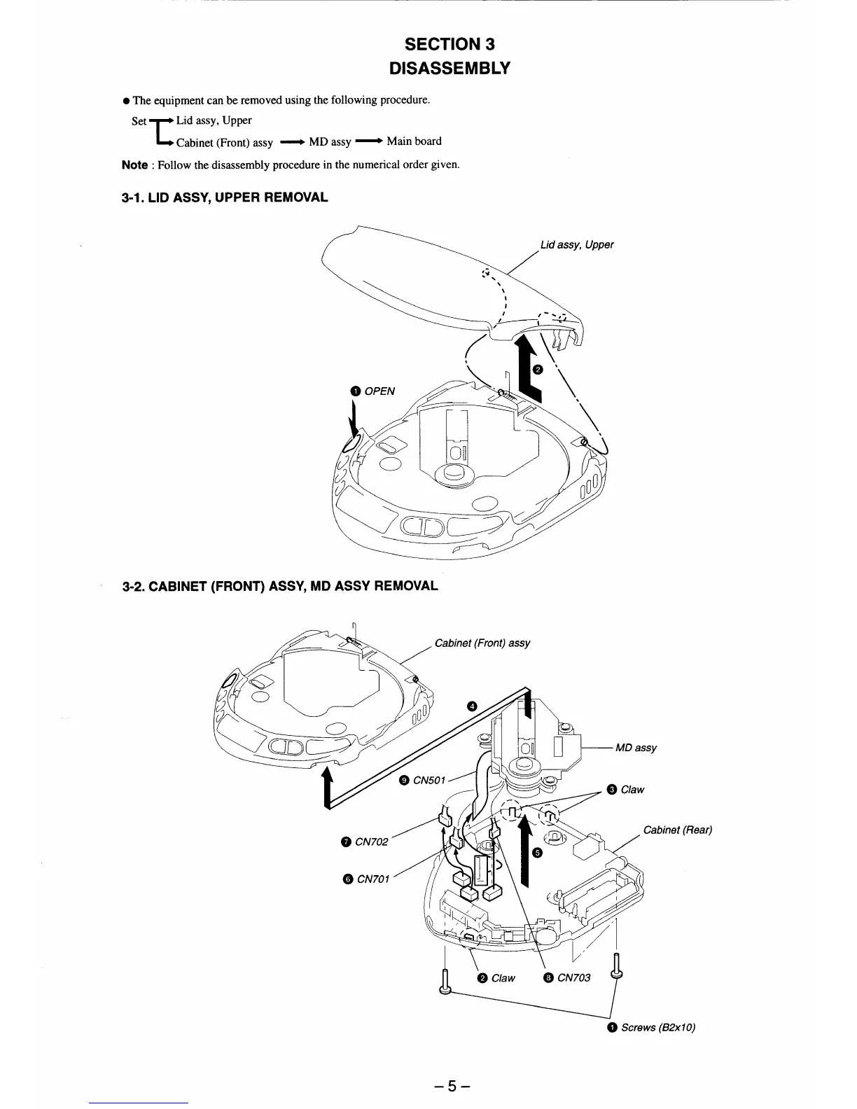 Sony D-E300AN - Disassembly Procedures; Lid and Cabinet Removal