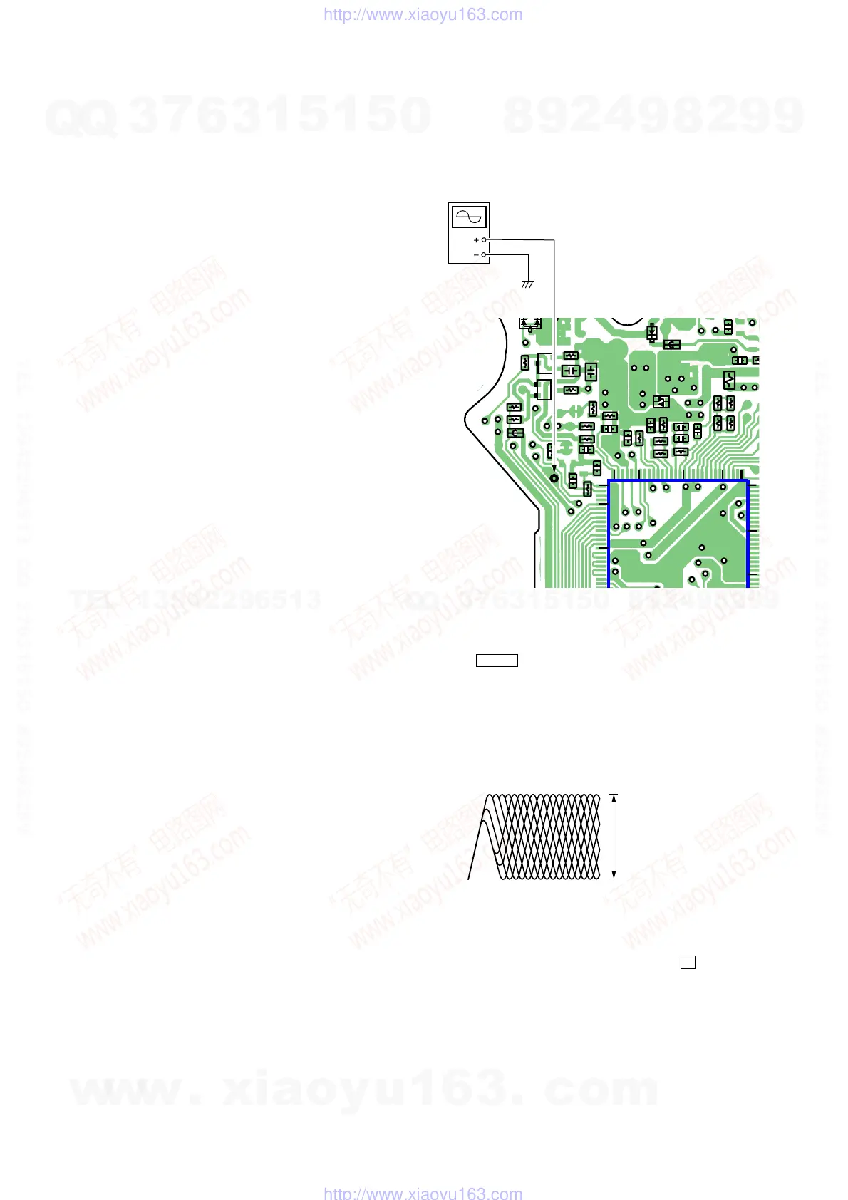1. Connect the oscilloscope to the test points TP601(RF) on the
