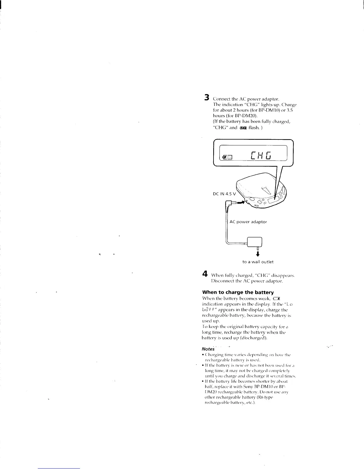Sony D-E405 - Compact Disc Player - When to Charge the Battery
