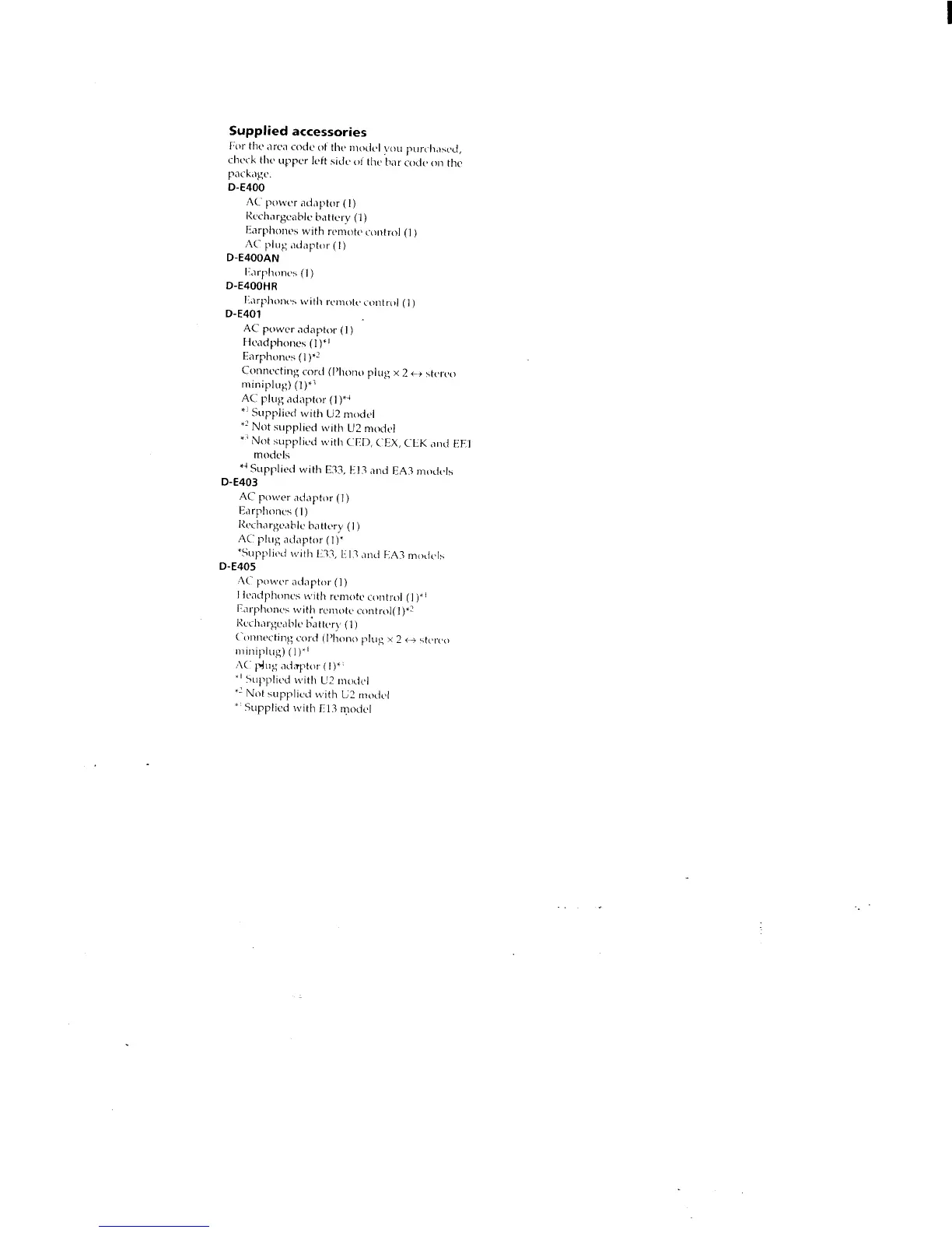 Sony D-E405 - Compact Disc Player - Supplied Accessories