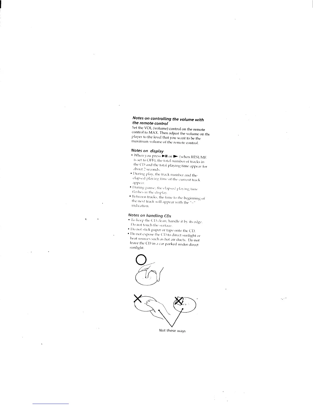 Sony D-E405 - Compact Disc Player - Notes on Controlling the Volume with the Remote Control; Array