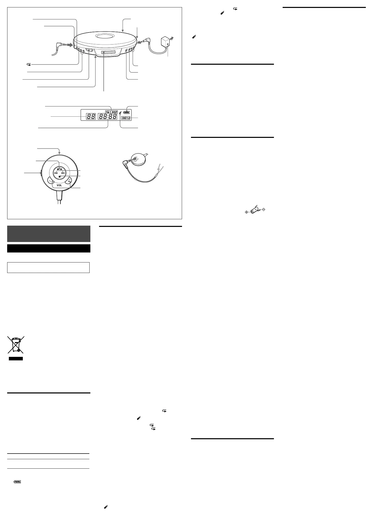 • Ne helyezzen nehéz tárgyat a készülékre. A lejátszó és a CD-lemez