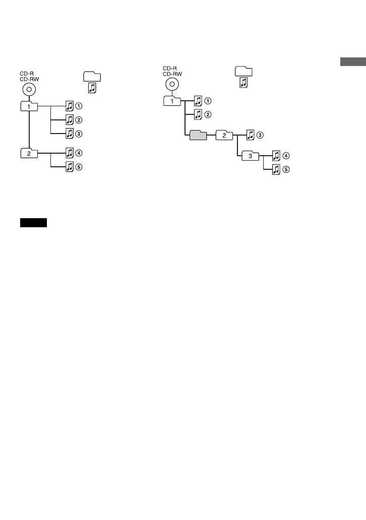 • Depending on the method used to record MP3 files on the disc, the playing order may be different from the
