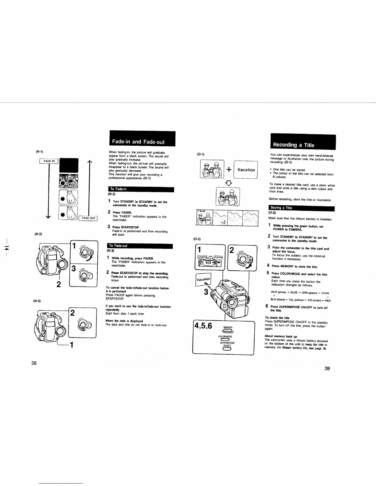 Sony ??D-TR50E - Fade-In and Fade-Out; Recording a Title; Storing a Title