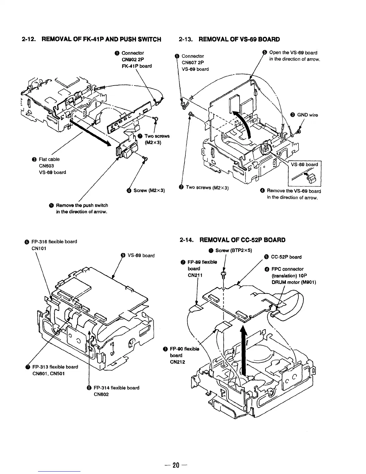Sony ??D-TR50E - Removal of FK-41 P and Push Switch; Removal of VS-69 Board; Removal of CC-52 P Board