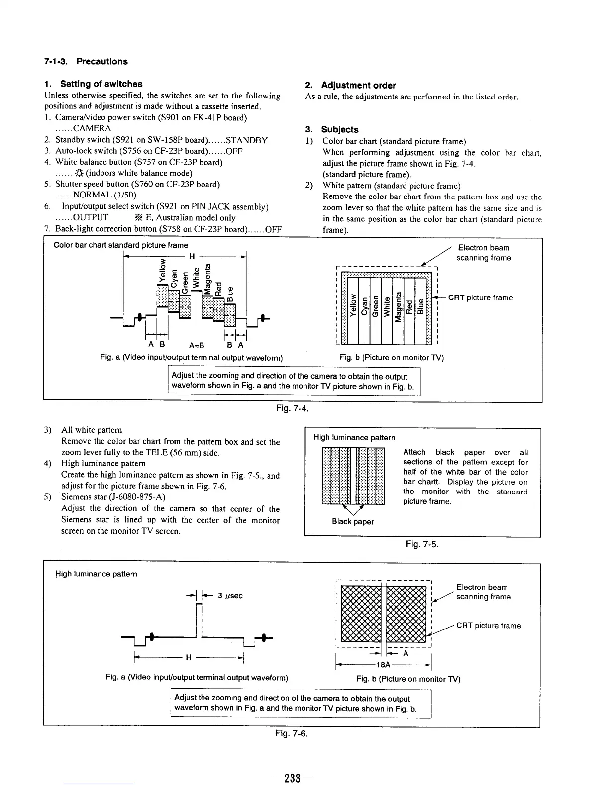 Sony ??D-TR50E - Precautions; Setting of Switches; Adjustment Order; Subjects