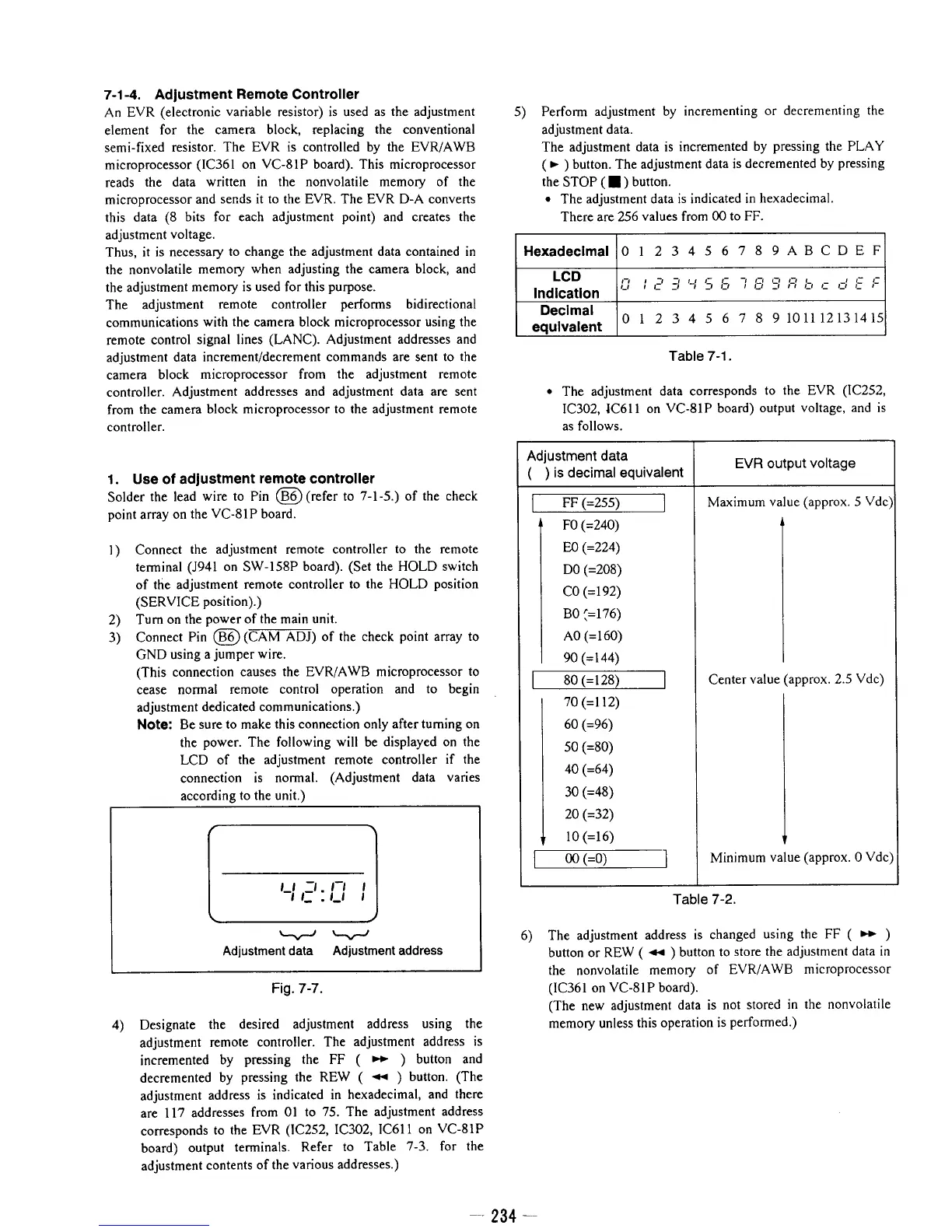 Sony ??D-TR50E - Adjustment Remote Controller; Use of Adjustment Remote Controller