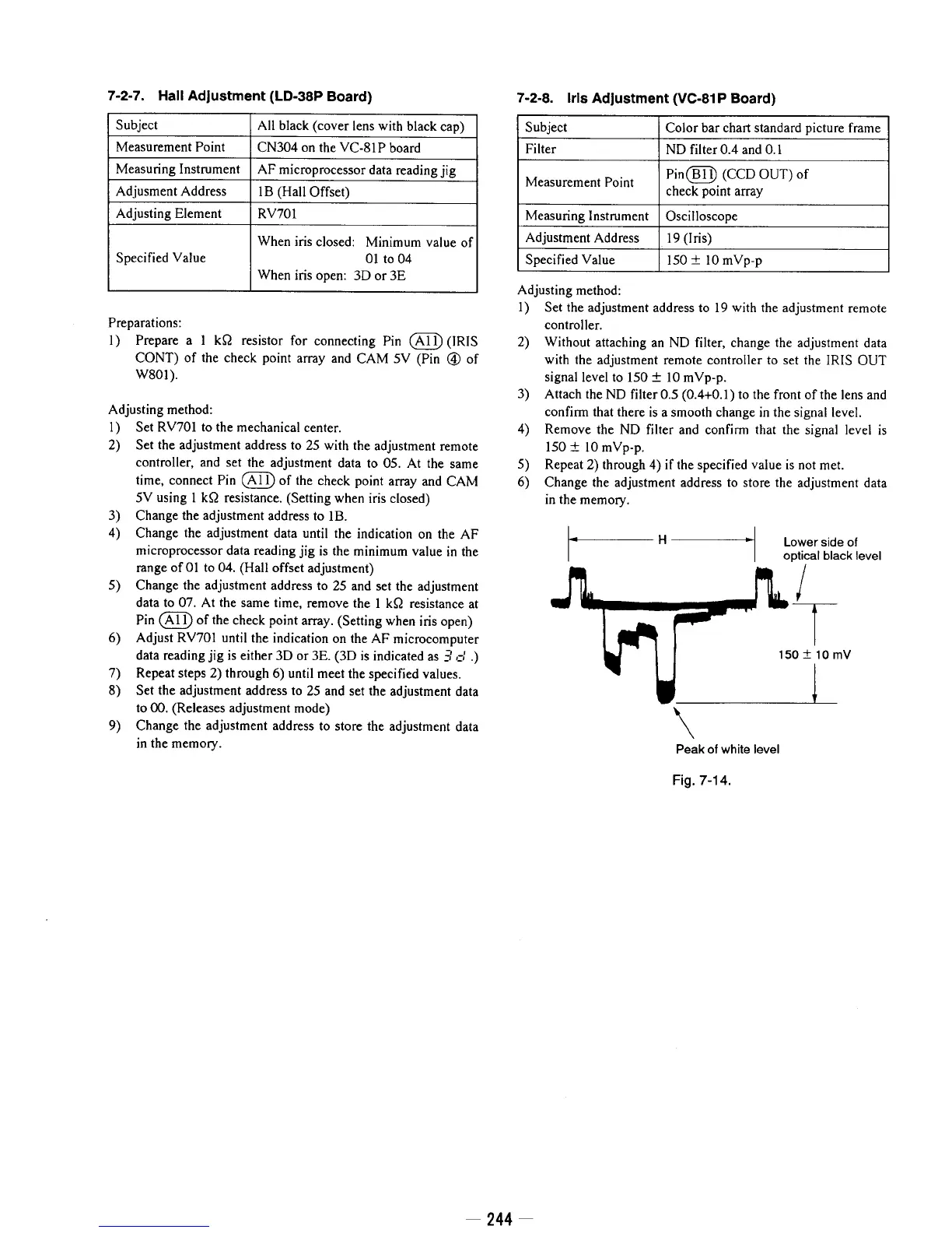 Sony ??D-TR50E - Hall Adjustment (LD-38 P Board); Iris Adjustment (VC-81 P Board)